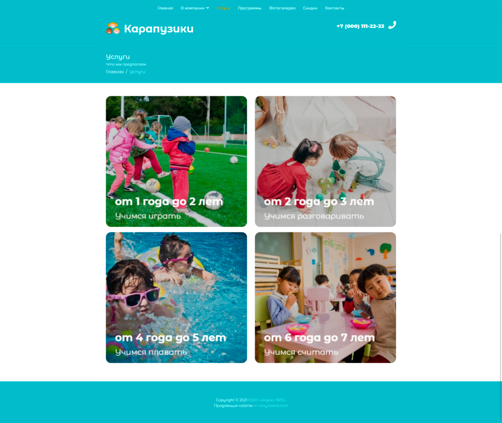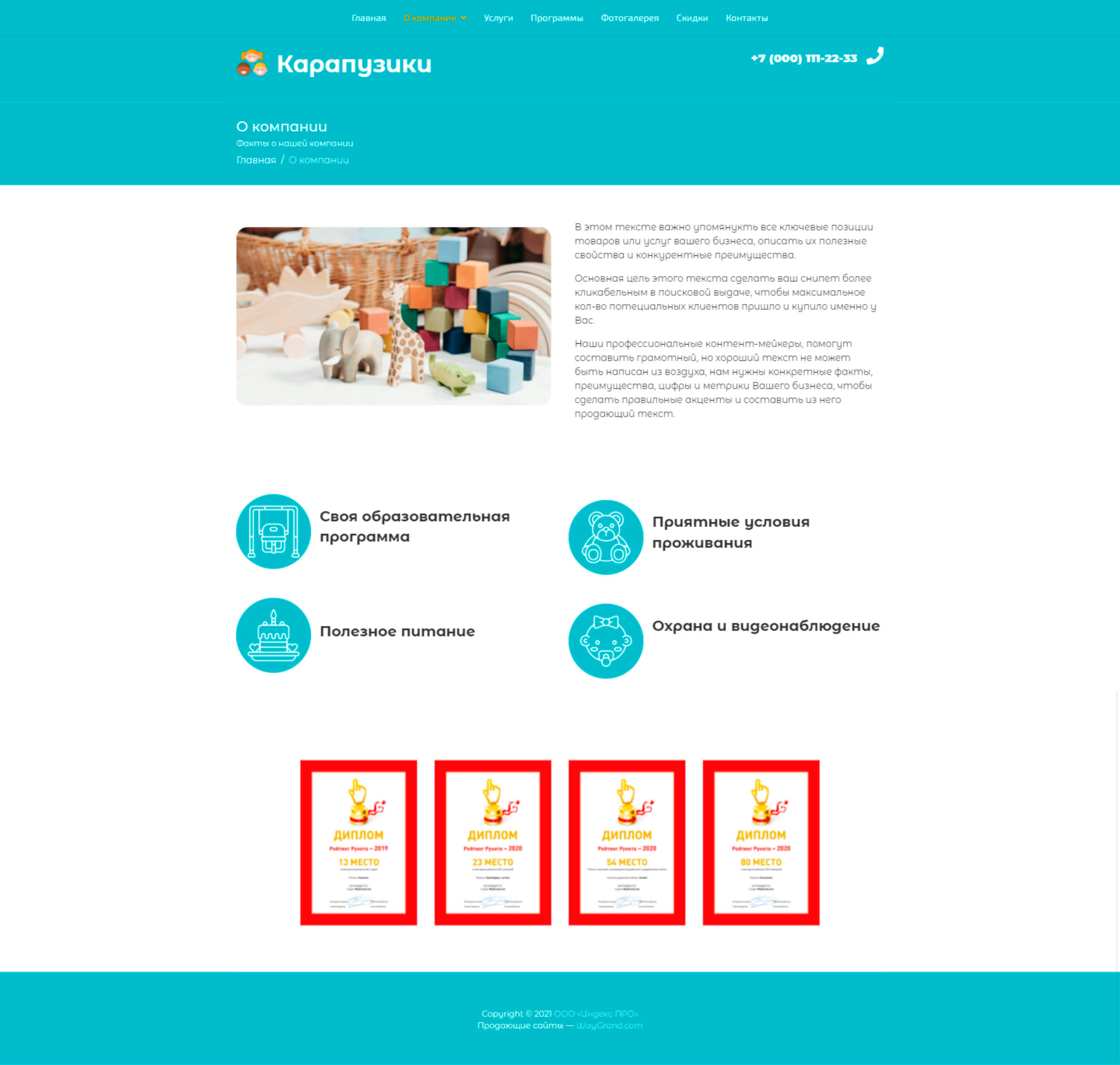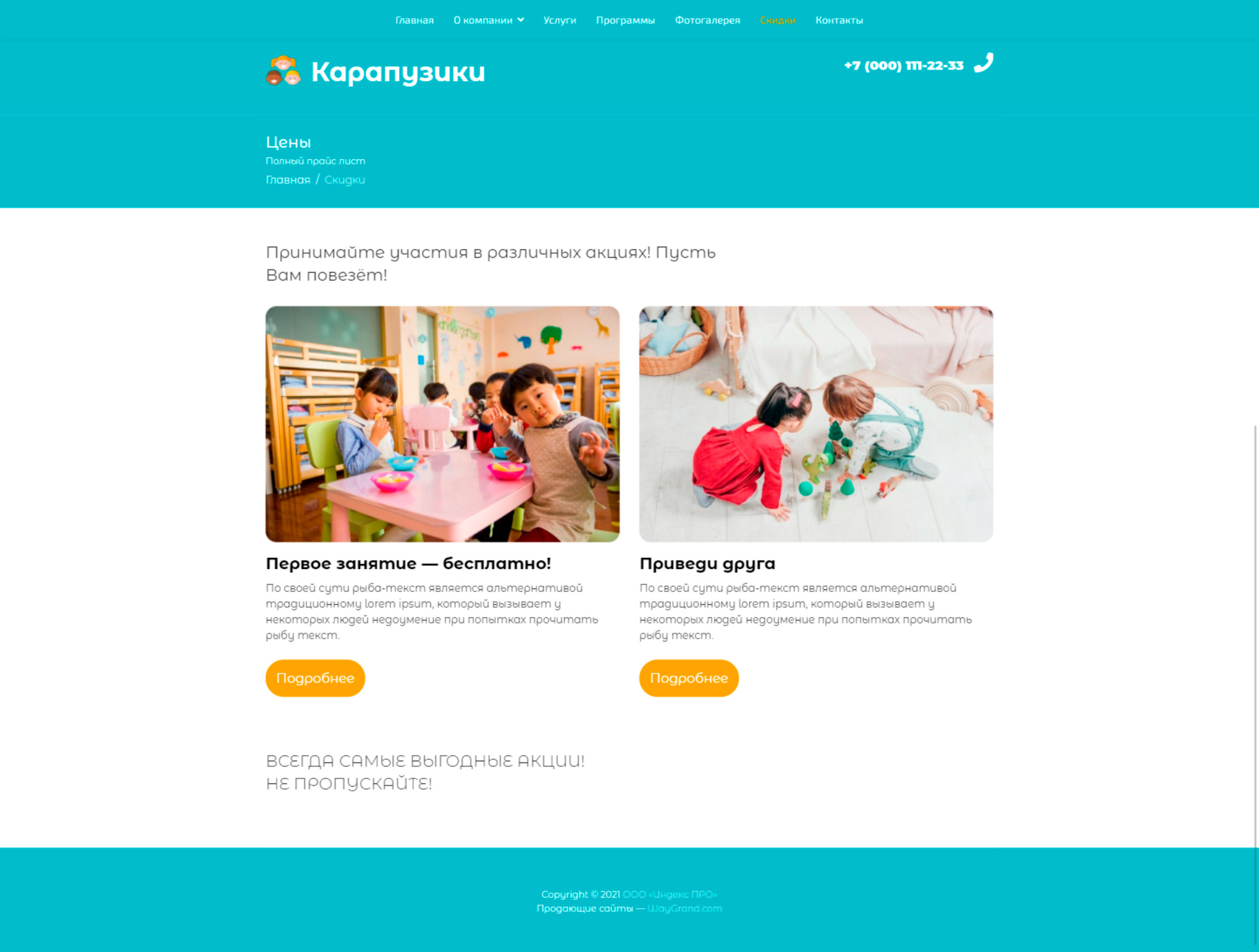 Закажите готовый продающий сайт визитка #0419301 в Ветке за 5-7 дня «под ключ»: свёрстан, отрисован и готов к рекламе. Тематика шаблона «Частный детский центр».