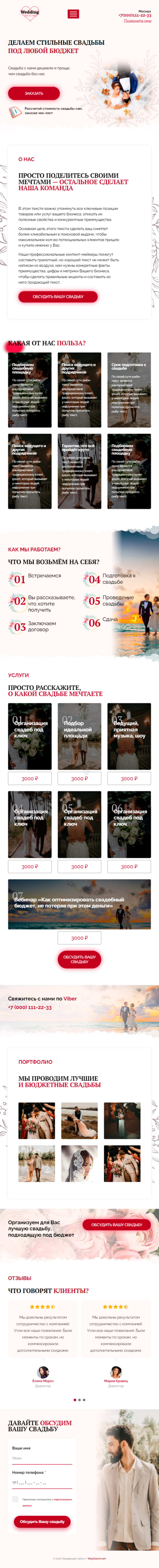 Закажите готовый продающий сайт лендинг #0440206 в Ветке за 1-3 дня «под ключ»: свёрстан, отрисован и готов к рекламе. Тематика шаблона «Организация свадеб».