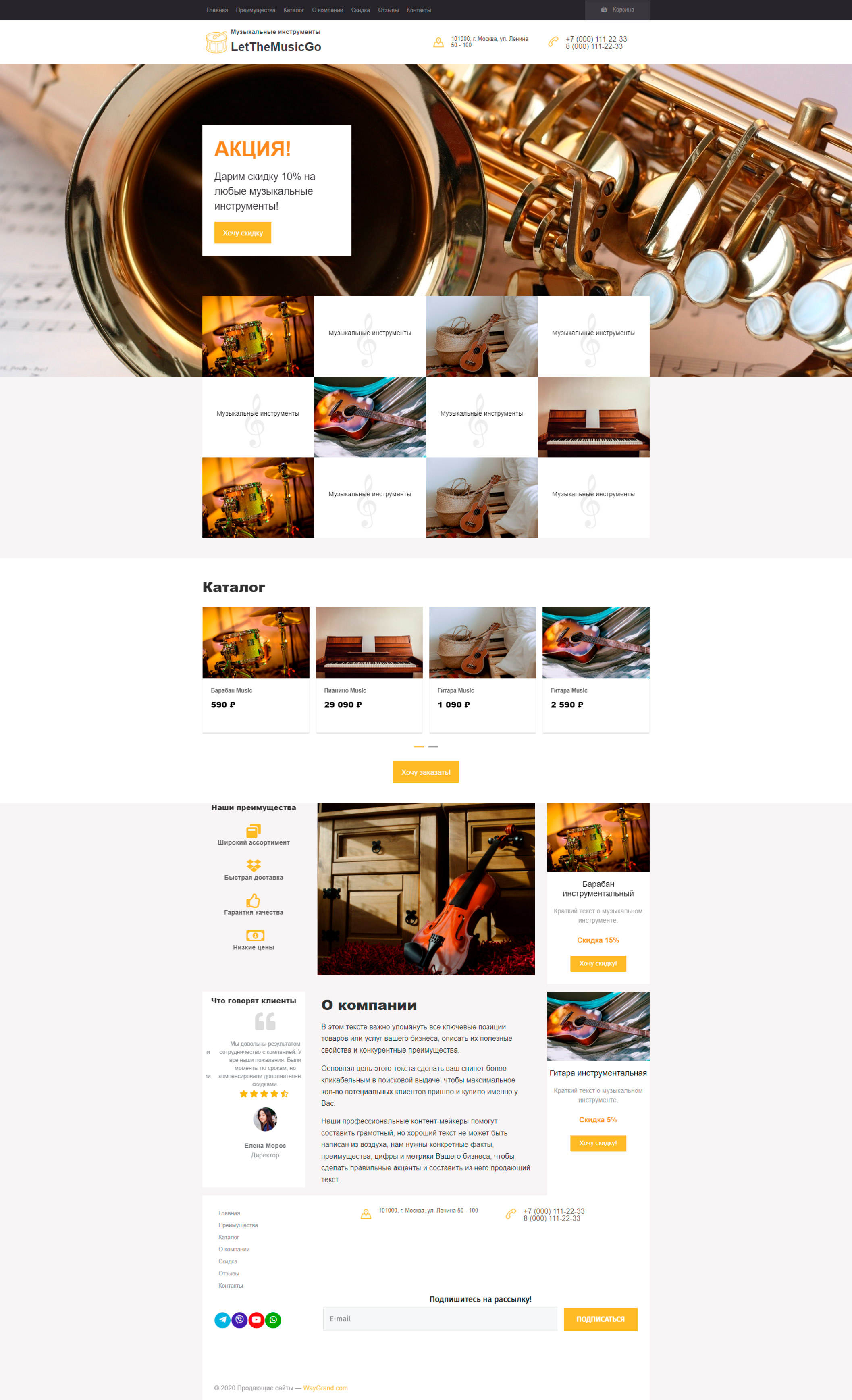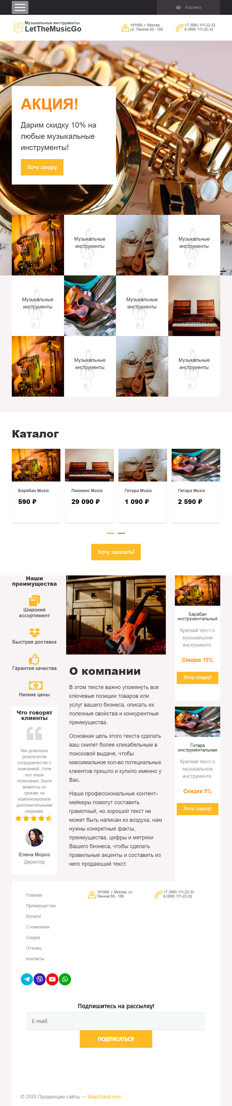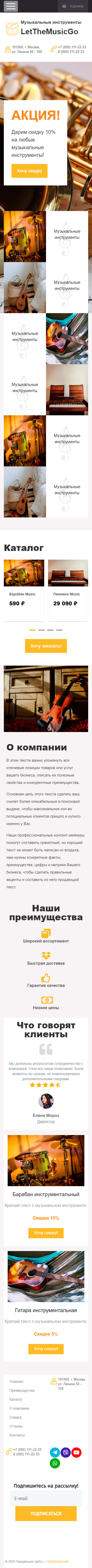 Закажите готовый продающий сайт лендинг #0710201 в Ветке за 1-3 дня «под ключ»: свёрстан, отрисован и готов к рекламе. Тематика шаблона «Музыкальные инструменты».