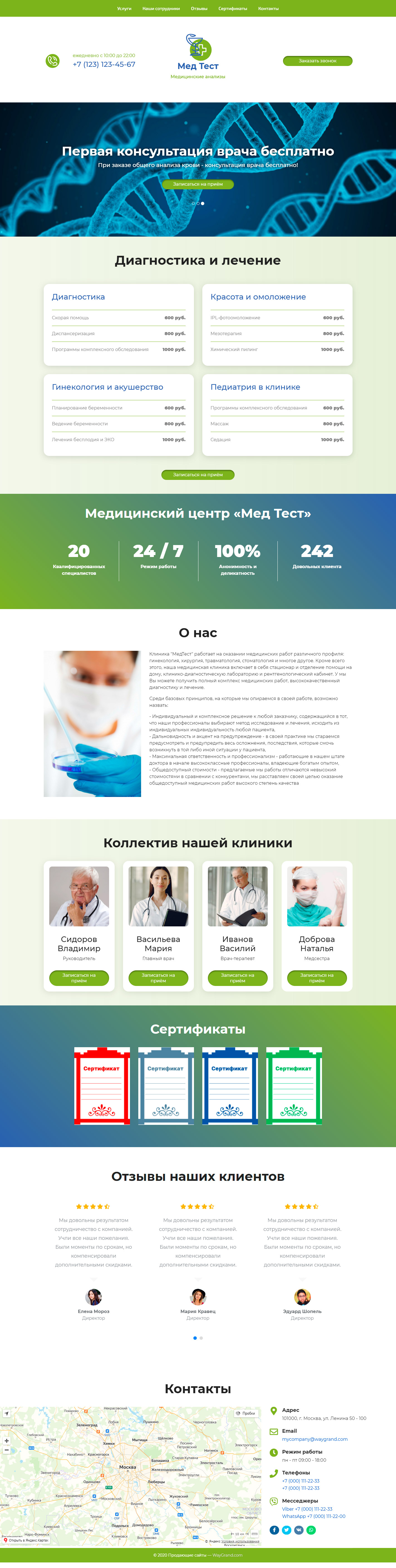 Закажите готовый продающий сайт лендинг #1025201 в Ветке за 1-3 дня «под ключ»: свёрстан, отрисован и готов к рекламе. Тематика шаблона «Медицинские анализы».