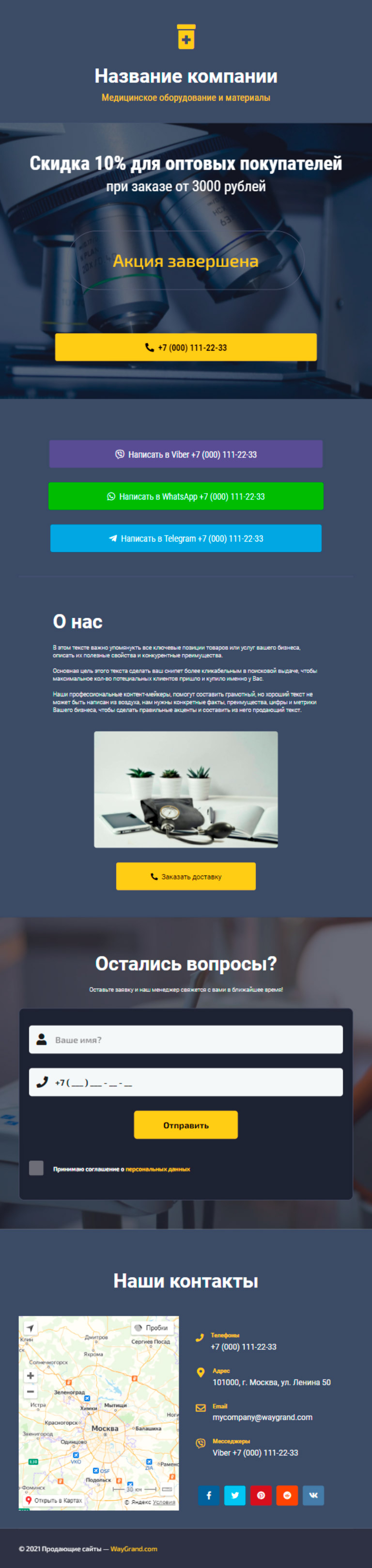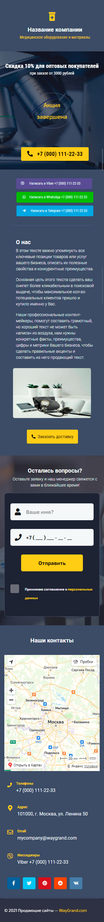 Закажите готовый продающий сайт визитка #1027101 в Ветке за 5-7 дня «под ключ»: свёрстан, отрисован и готов к рекламе. Тематика шаблона «Медицинское оборудование и материалы».