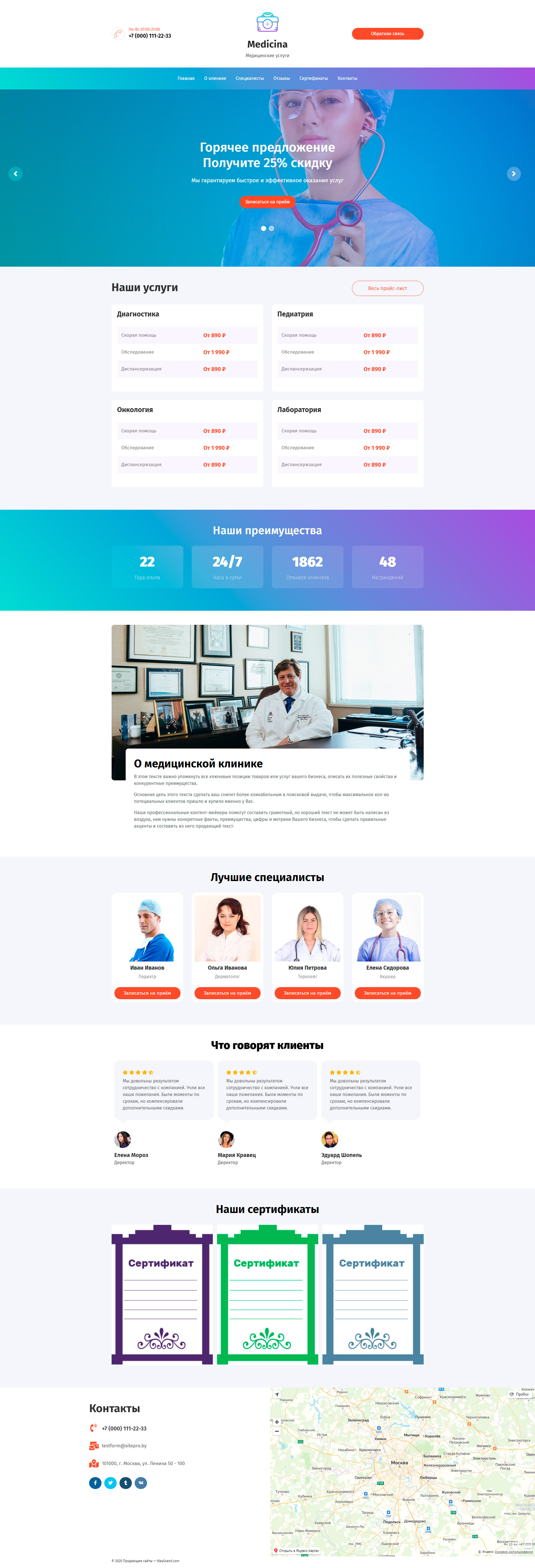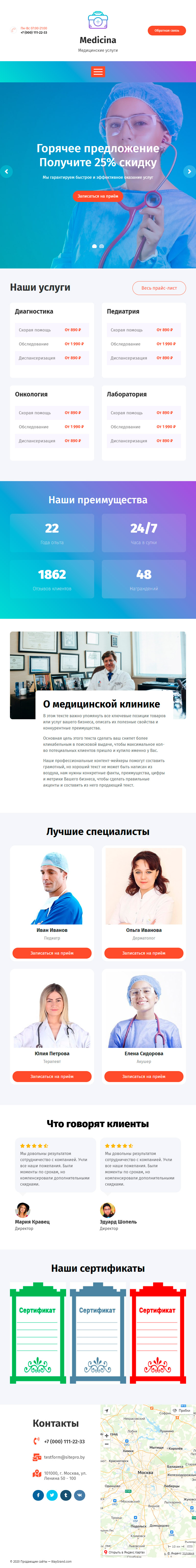 Закажите готовый продающий сайт лендинг #1030201 в Ветке за 1-3 дня «под ключ»: свёрстан, отрисован и готов к рекламе. Тематика шаблона «Медицинские услуги».