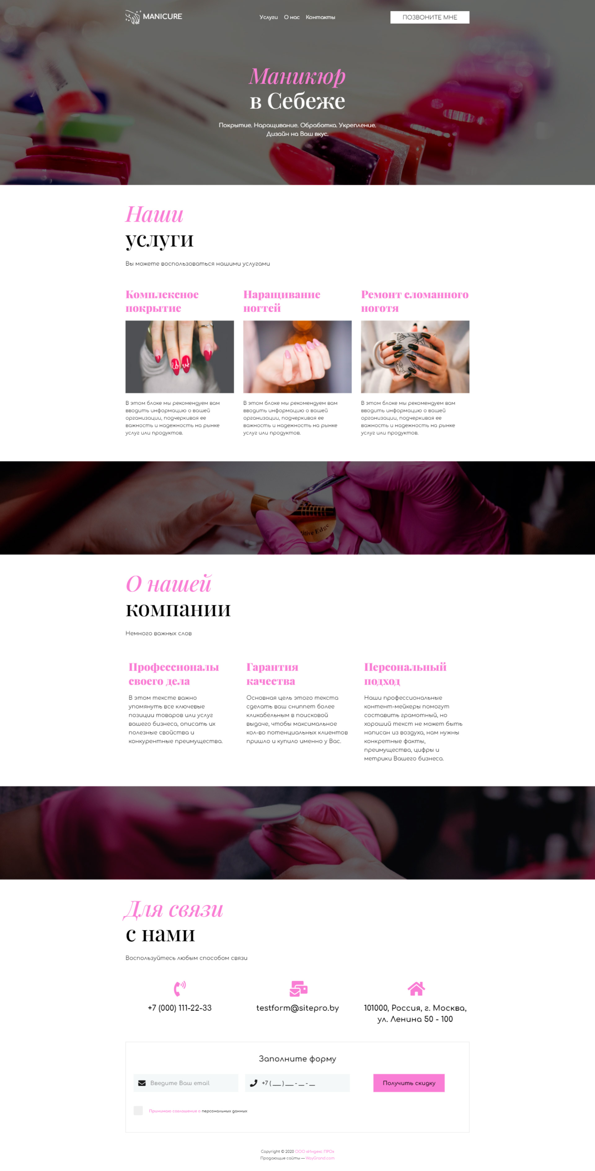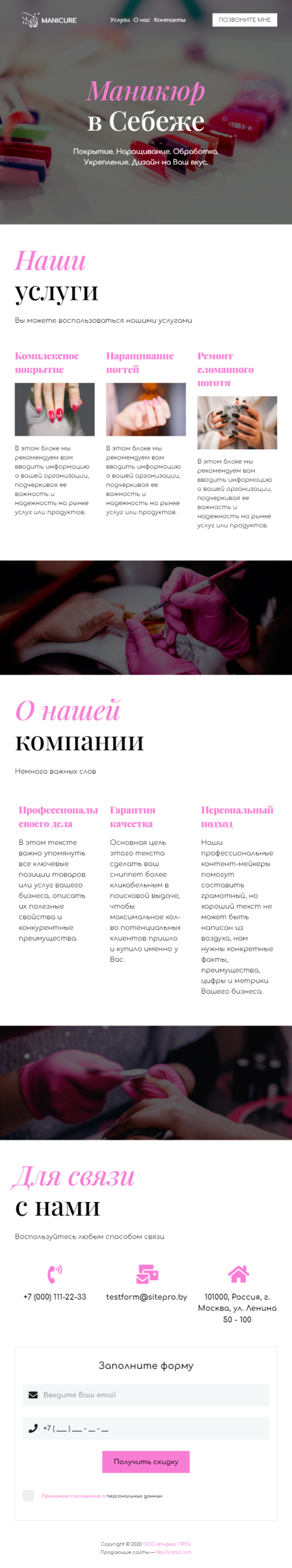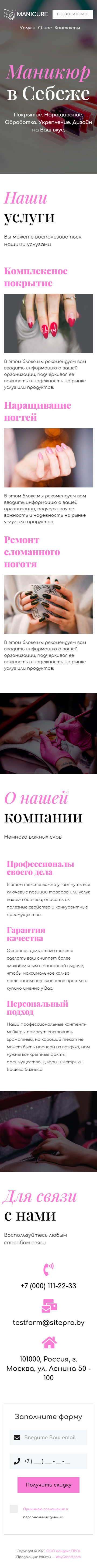 Закажите готовый продающий сайт визитка #1107102 в Ветке за 5-7 дня «под ключ»: свёрстан, отрисован и готов к рекламе. Тематика шаблона «Маникюр в Себеже».
