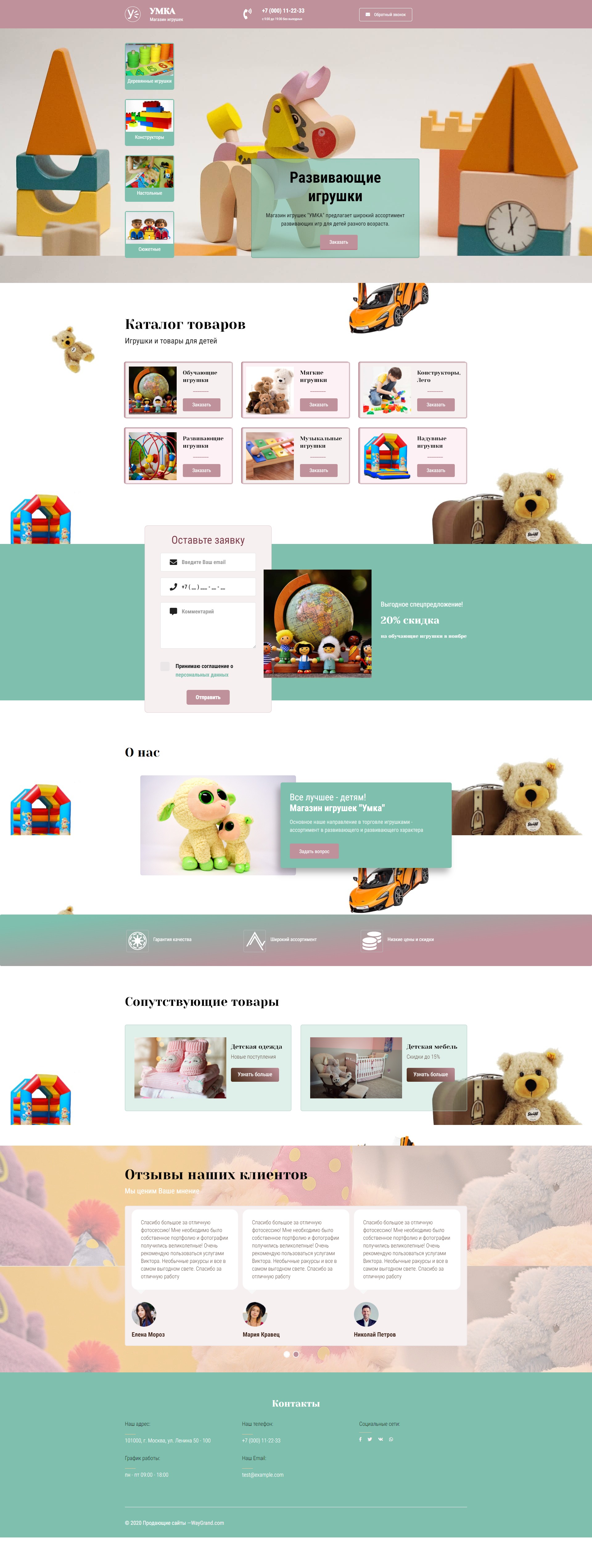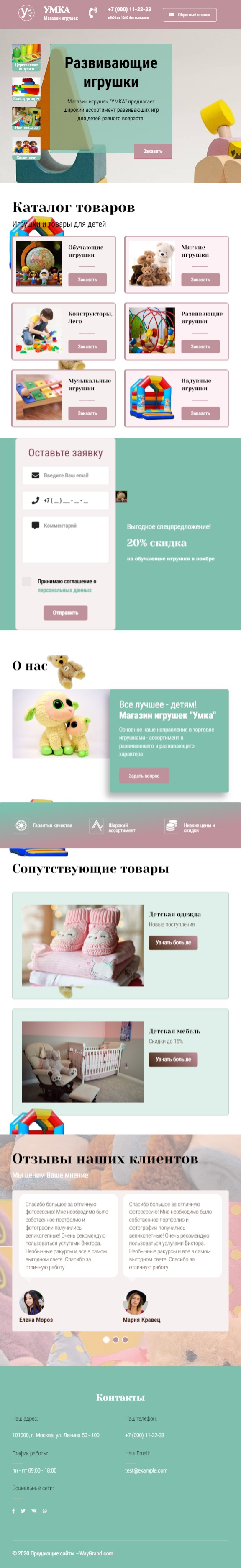 Закажите готовый продающий сайт лендинг #2442201 в Ветке за 1-3 дня «под ключ»: свёрстан, отрисован и готов к рекламе. Тематика шаблона «Магазин игрушек».