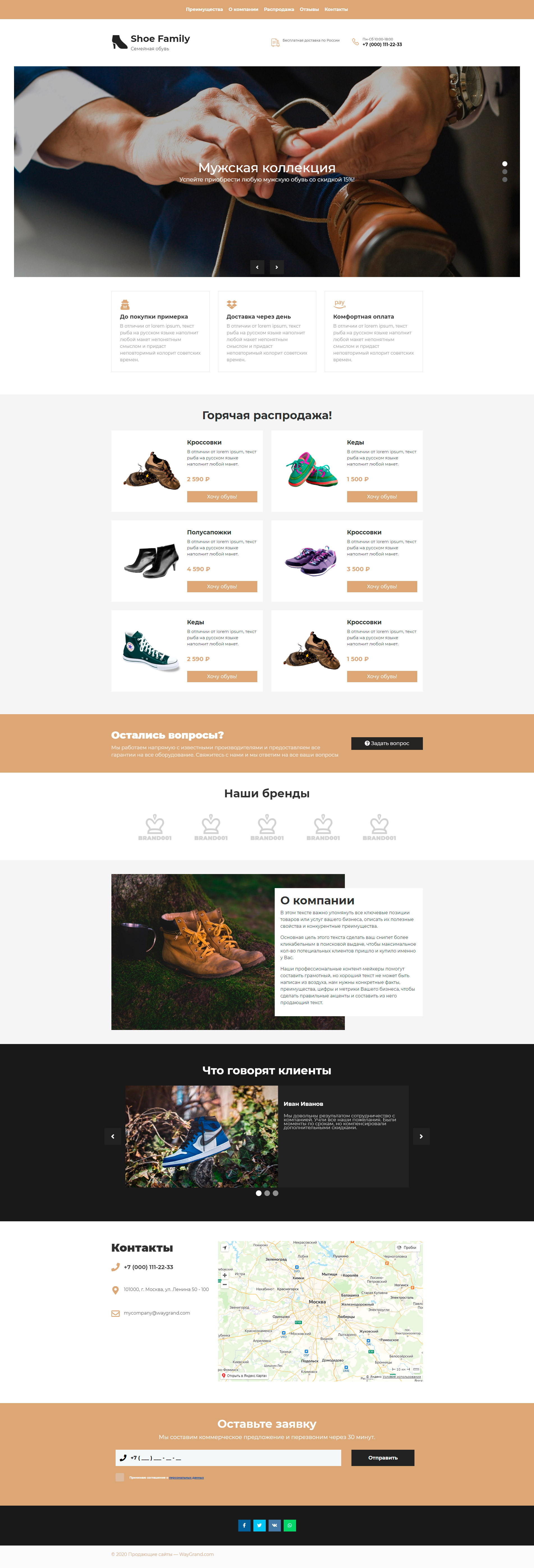 Закажите готовый продающий сайт лендинг #1517201 в Ветке за 1-3 дня «под ключ»: свёрстан, отрисован и готов к рекламе. Тематика шаблона «Обувь».
