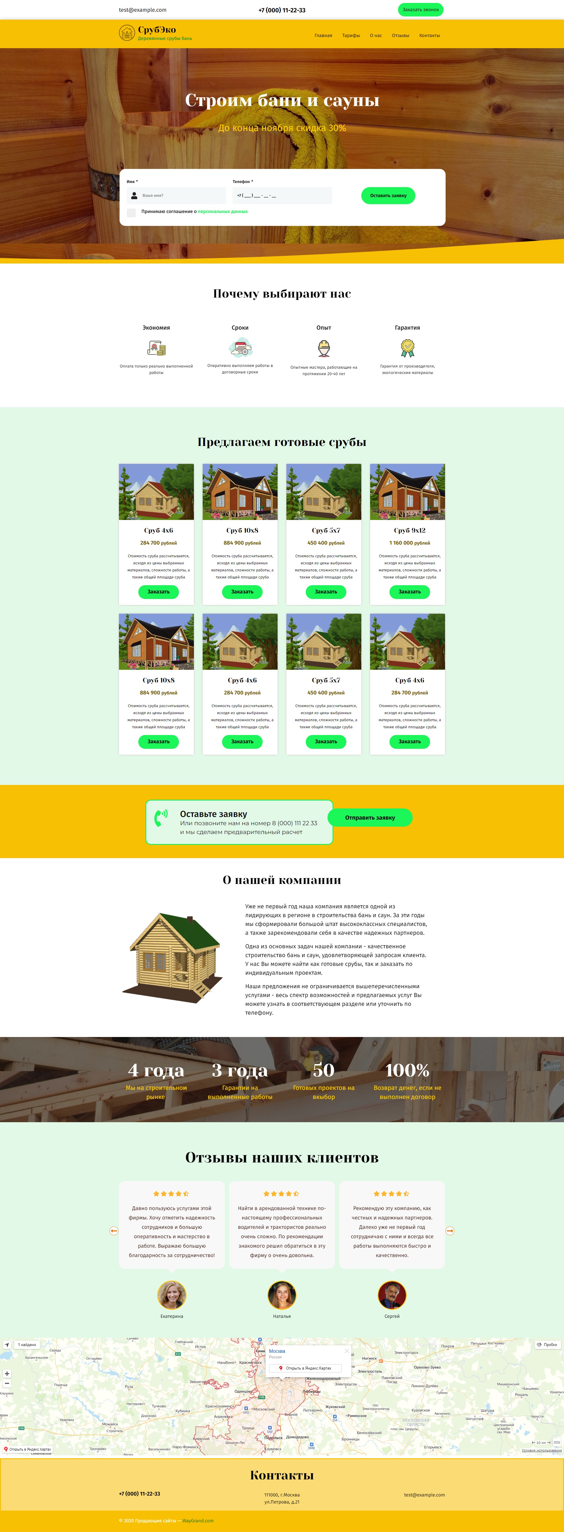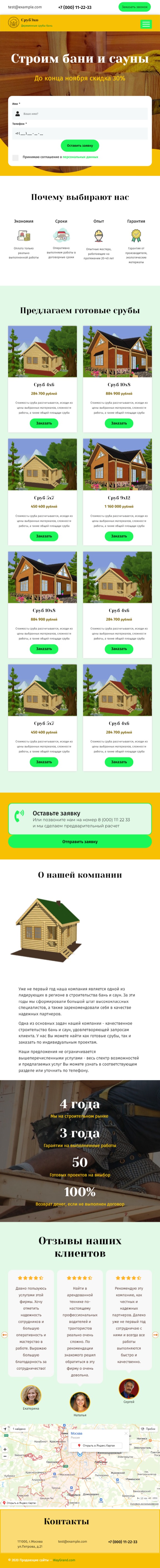 Закажите готовый продающий сайт лендинг #2172202 в Ветке за 1-3 дня «под ключ»: свёрстан, отрисован и готов к рекламе. Тематика шаблона «Строительство бань и саун».