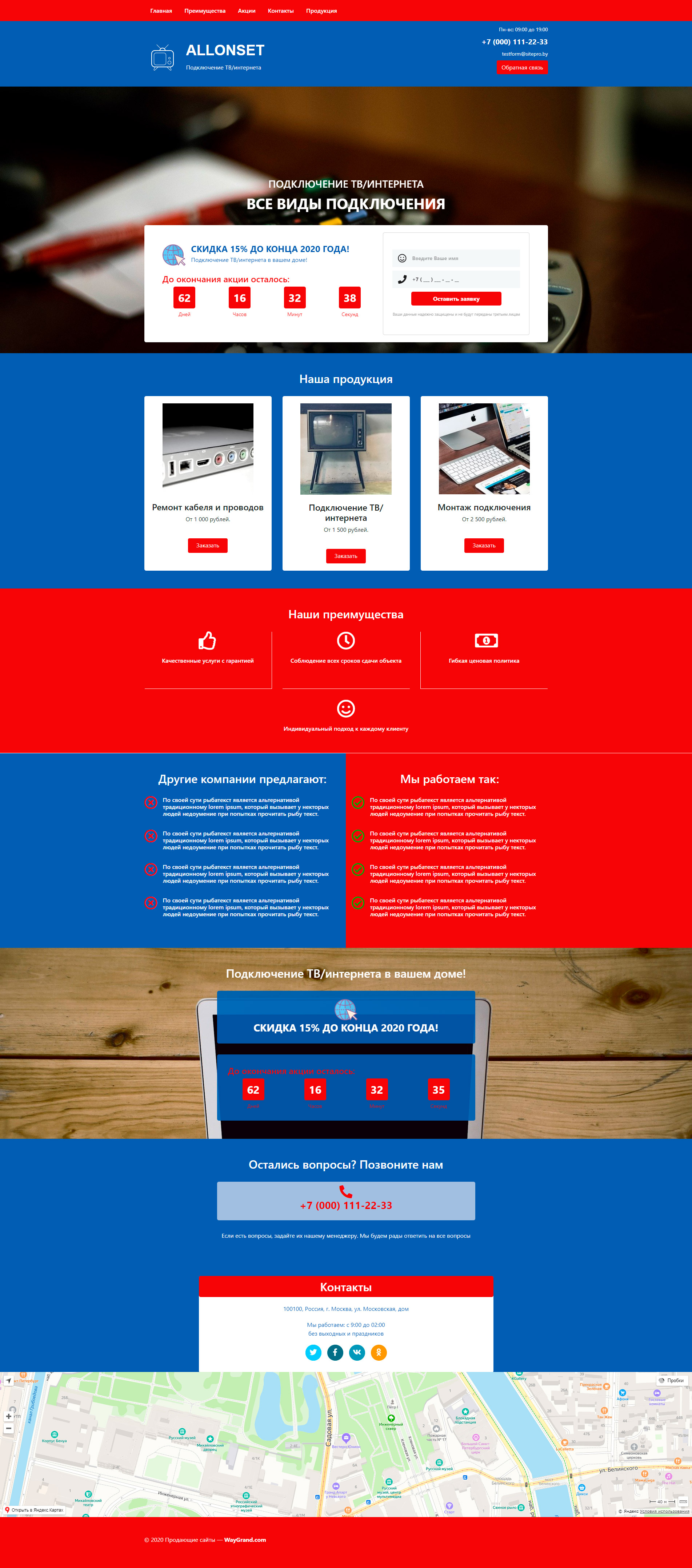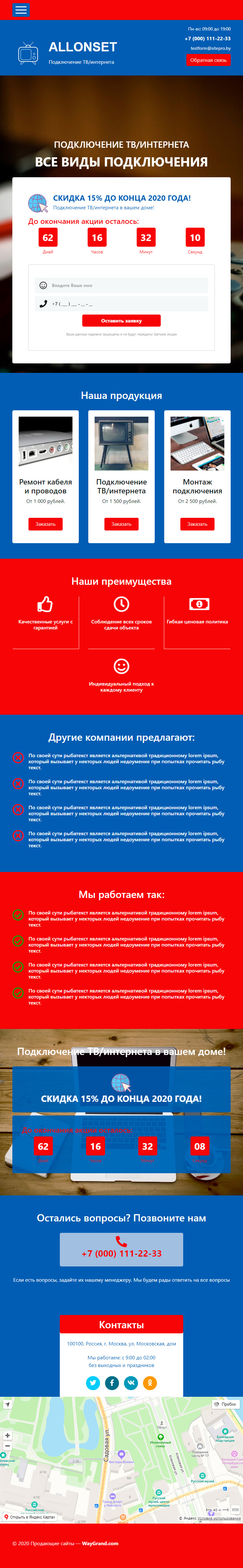 Закажите готовый продающий сайт лендинг #0718201 в Ветке за 1-3 дня «под ключ»: свёрстан, отрисован и готов к рекламе. Тематика шаблона «Подключение ТВ/интернета».