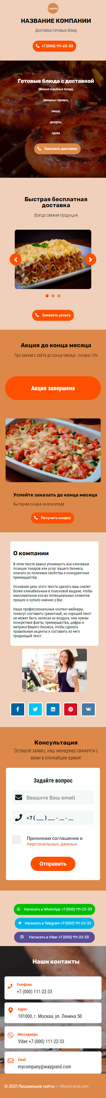 Закажите готовый продающий сайт визитка #0422101 в Ветке за 5-7 дня «под ключ»: свёрстан, отрисован и готов к рекламе. Тематика шаблона «Готовые блюда с доставкой».
