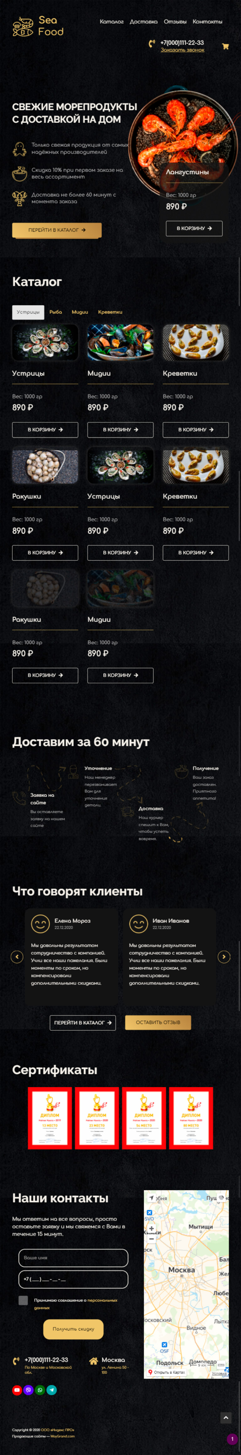 Закажите готовый продающий сайт лендинг #0422205 в Ветке за 1-3 дня «под ключ»: свёрстан, отрисован и готов к рекламе. Тематика шаблона «Доставка морепродуктов на дом».