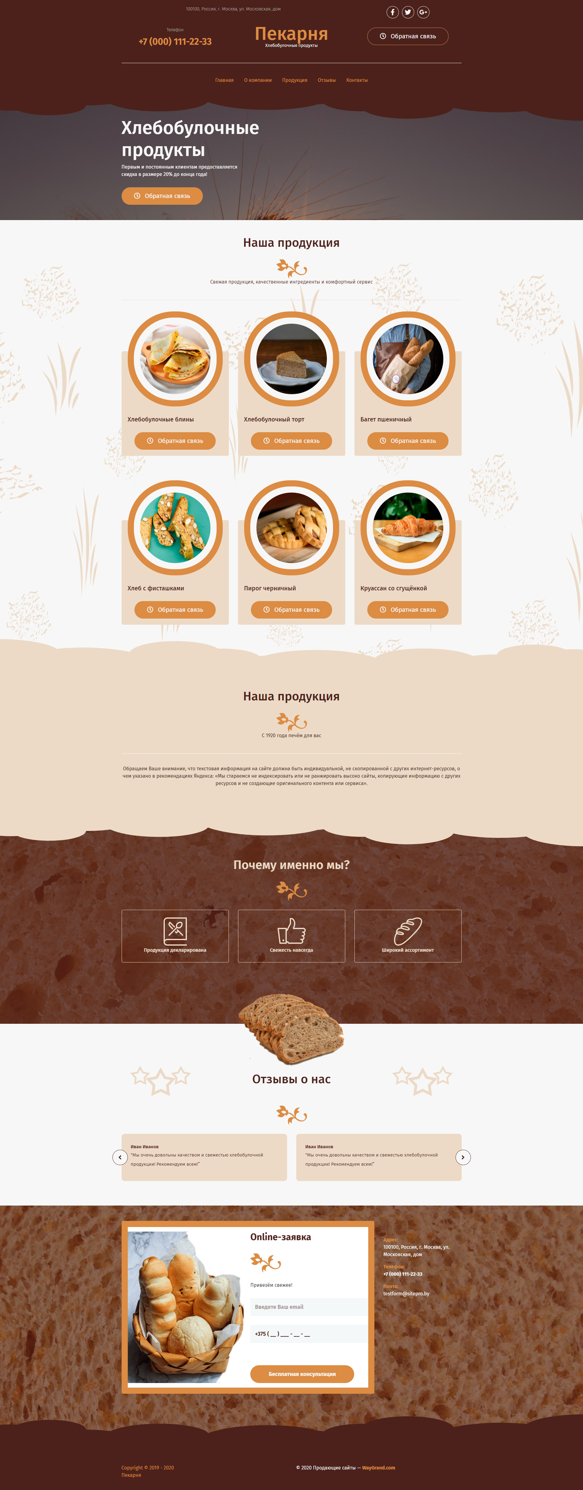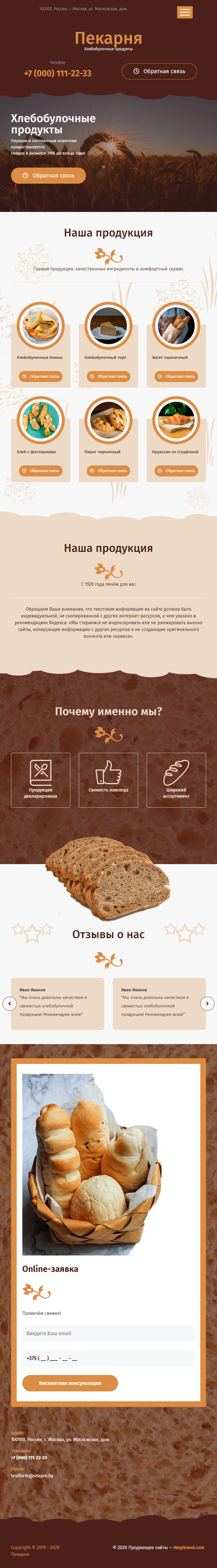 Закажите готовый продающий сайт лендинг #1739201 в Ветке за 1-3 дня «под ключ»: свёрстан, отрисован и готов к рекламе. Тематика шаблона «Пекарня».