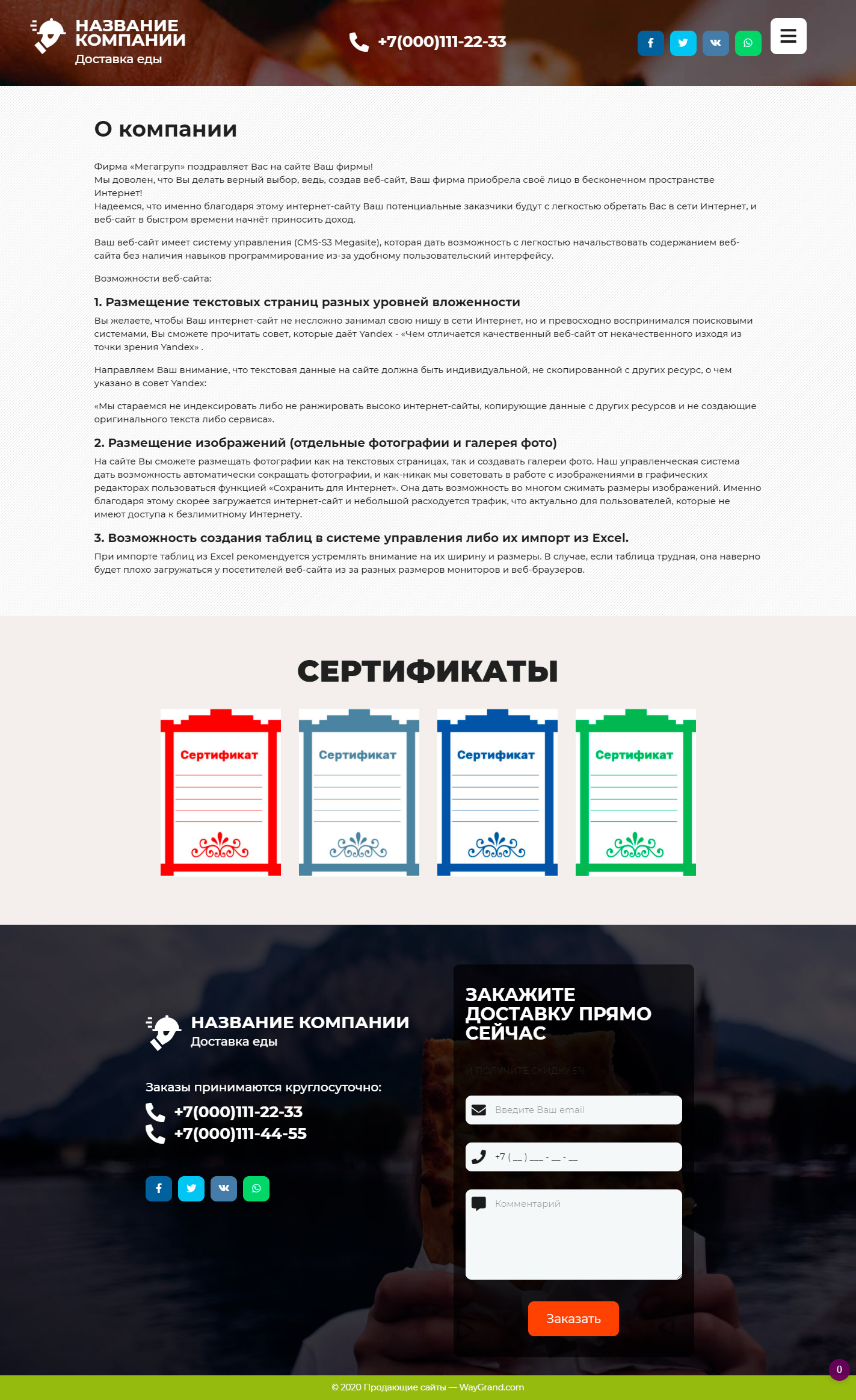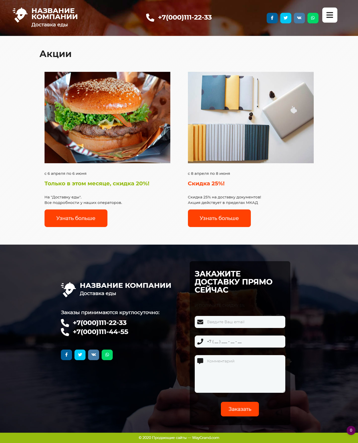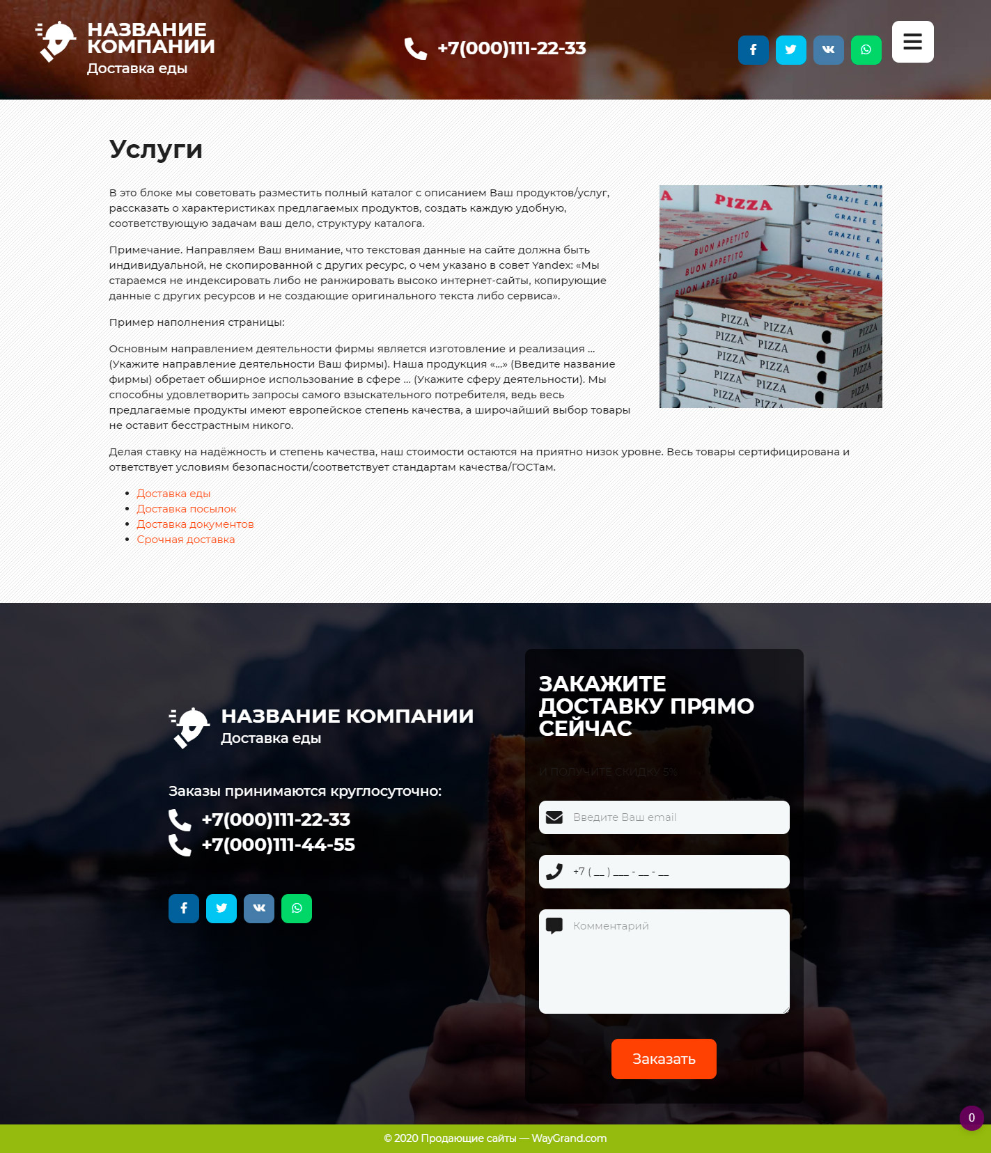 Готовый сайт визитка Курьерская доставка еды #3071302 — Купить на WayGrand.com в Ветке