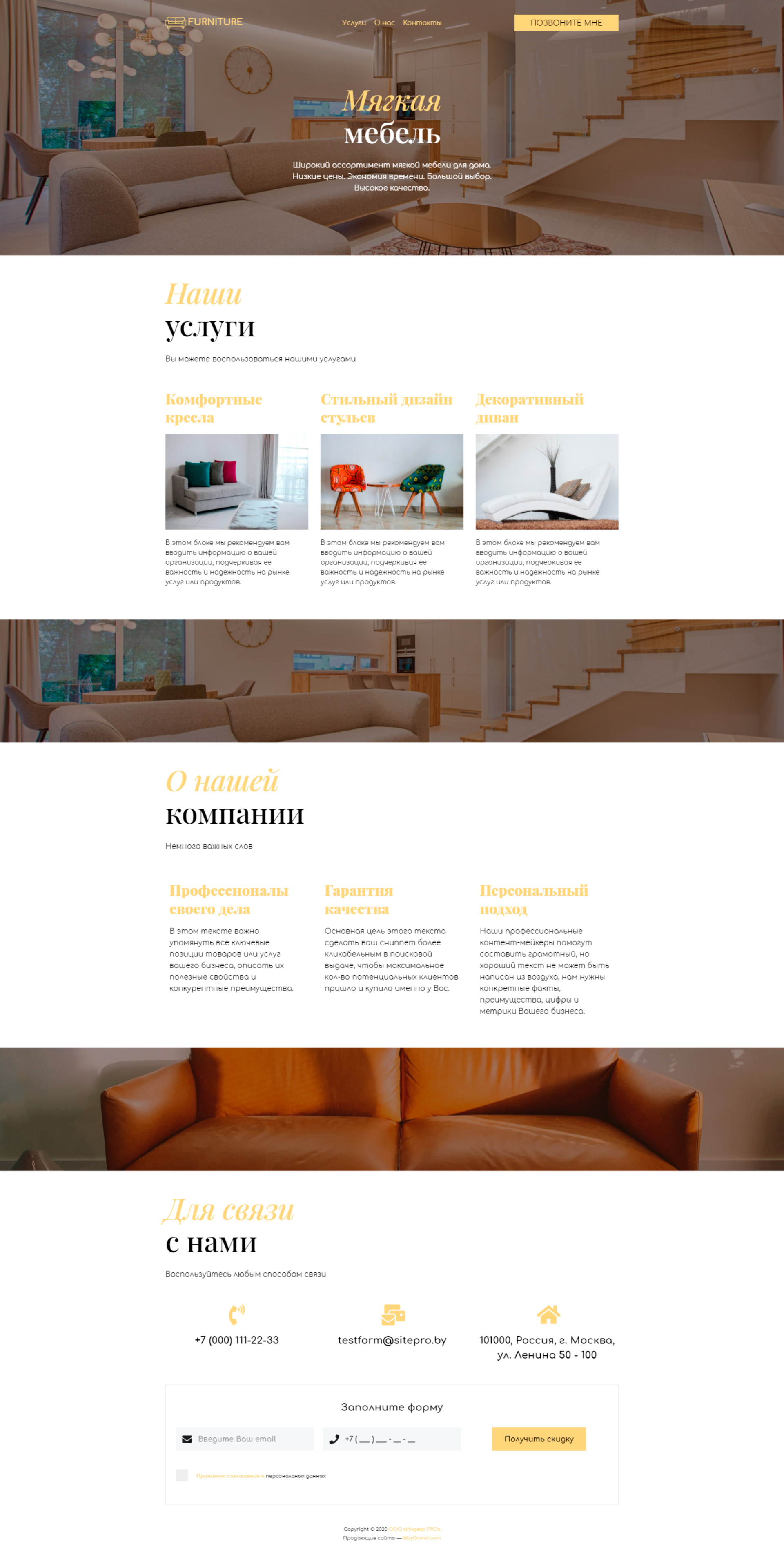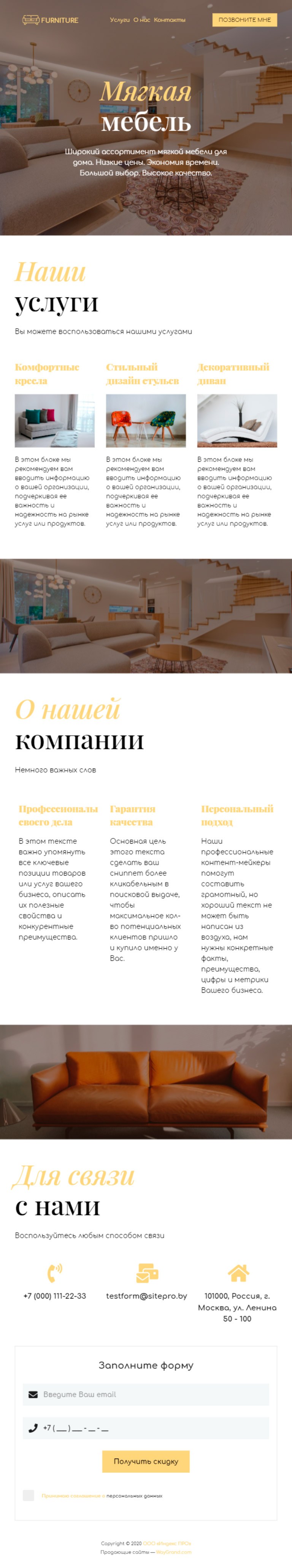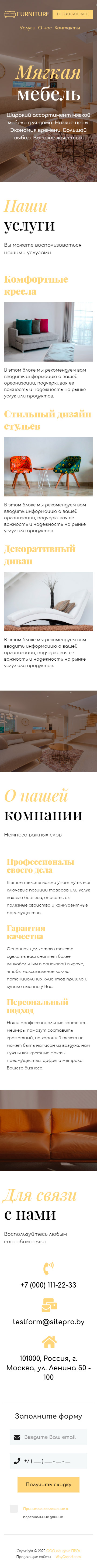 Закажите готовый продающий сайт визитка #0919101 в Ветке за 5-7 дня «под ключ»: свёрстан, отрисован и готов к рекламе. Тематика шаблона «Мягкая мебель».