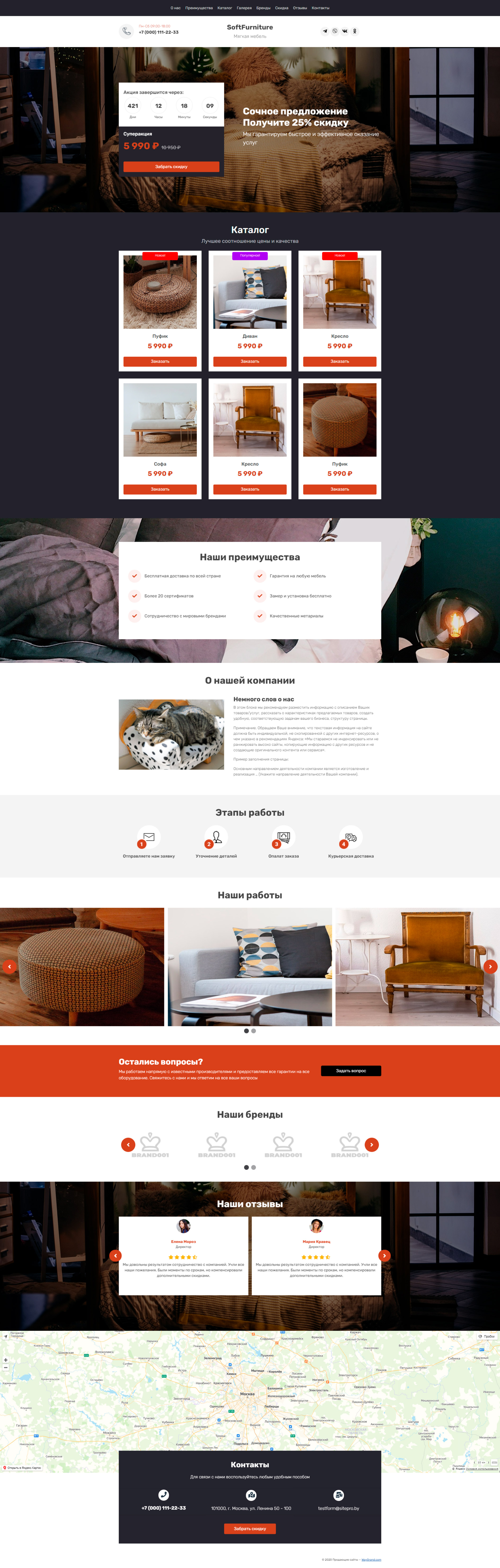 Закажите готовый продающий сайт лендинг #0919201 в Ветке за 1-3 дня «под ключ»: свёрстан, отрисован и готов к рекламе. Тематика шаблона «Мягкая мебель».