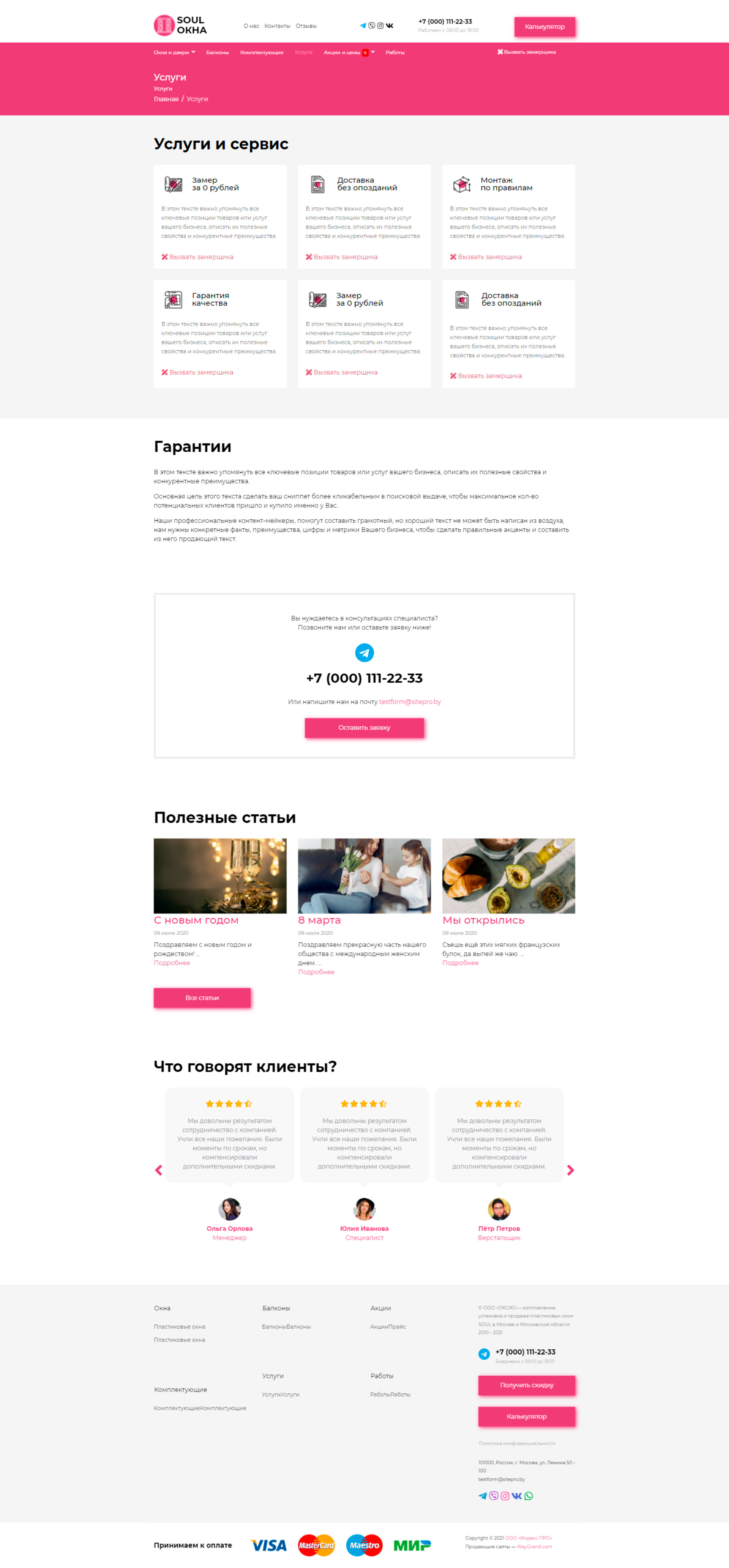 Закажите готовый продающий сайт визитка #2034303 в Ветке за 5-7 дня «под ключ»: свёрстан, отрисован и готов к рекламе. Тематика шаблона «Русские окна».