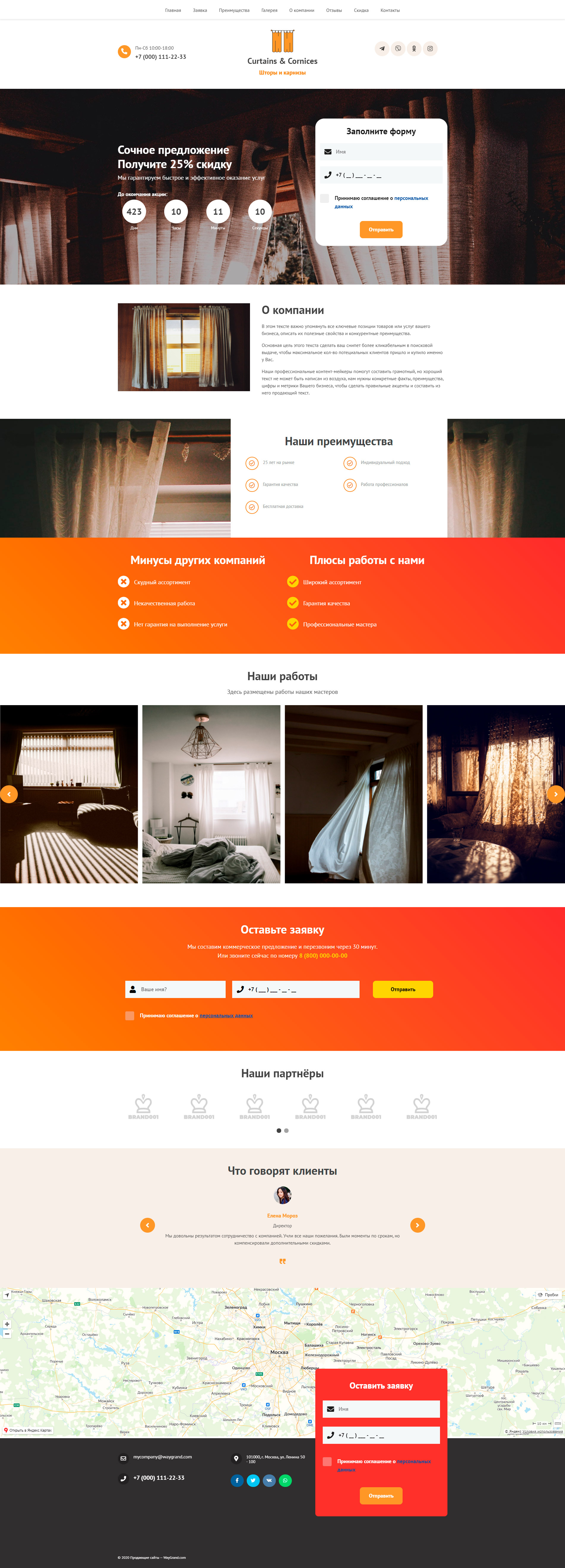 Закажите готовый продающий сайт лендинг #2203201 в Ветке за 1-3 дня «под ключ»: свёрстан, отрисован и готов к рекламе. Тематика шаблона «Шторы и карнизы».