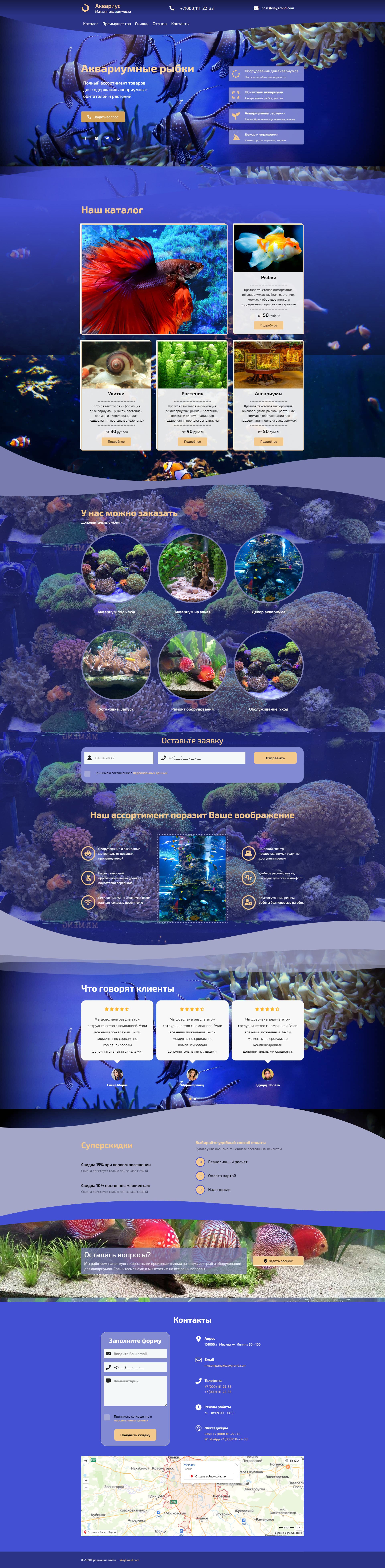 Закажите готовый продающий сайт лендинг #2301201 в Ветке за 1-3 дня «под ключ»: свёрстан, отрисован и готов к рекламе. Тематика шаблона «Аквариумные рыбки».