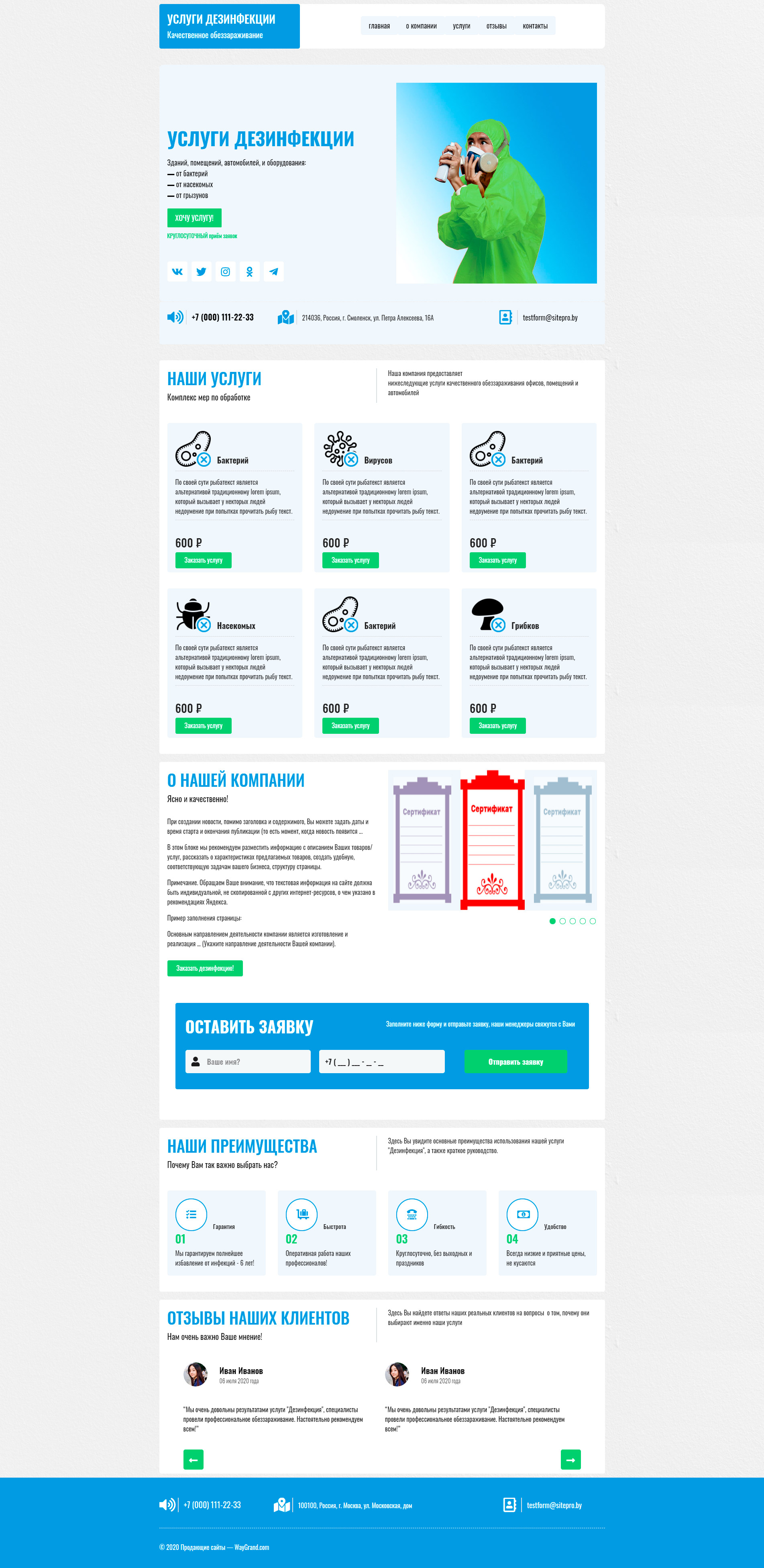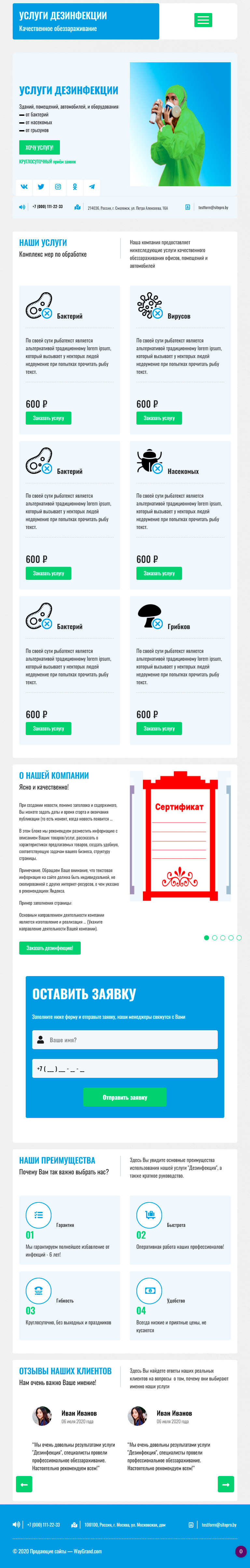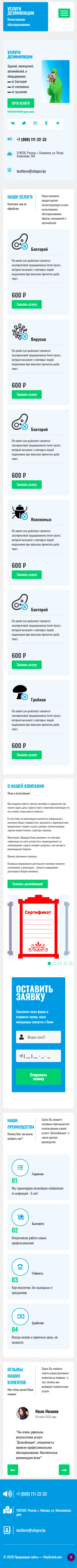 Закажите готовый продающий сайт лендинг #0608201 в Ветке за 1-3 дня «под ключ»: свёрстан, отрисован и готов к рекламе. Тематика шаблона «Услуги дезинфекции».