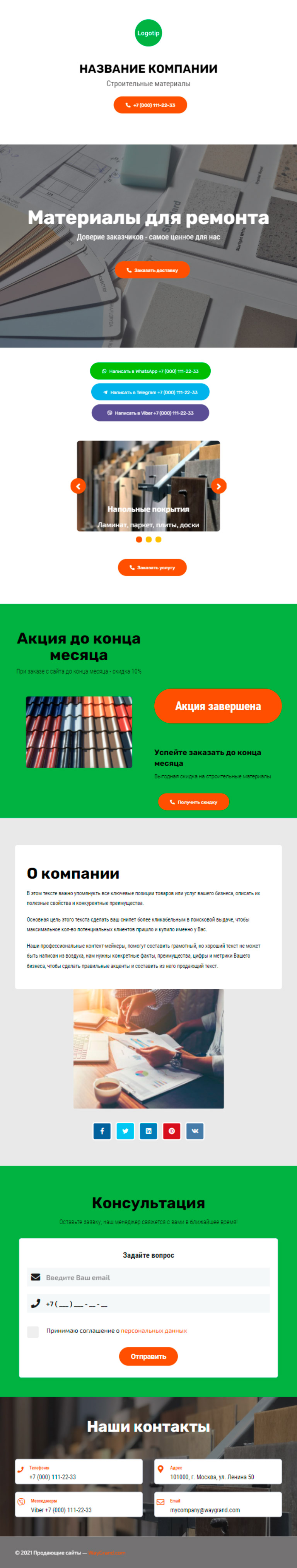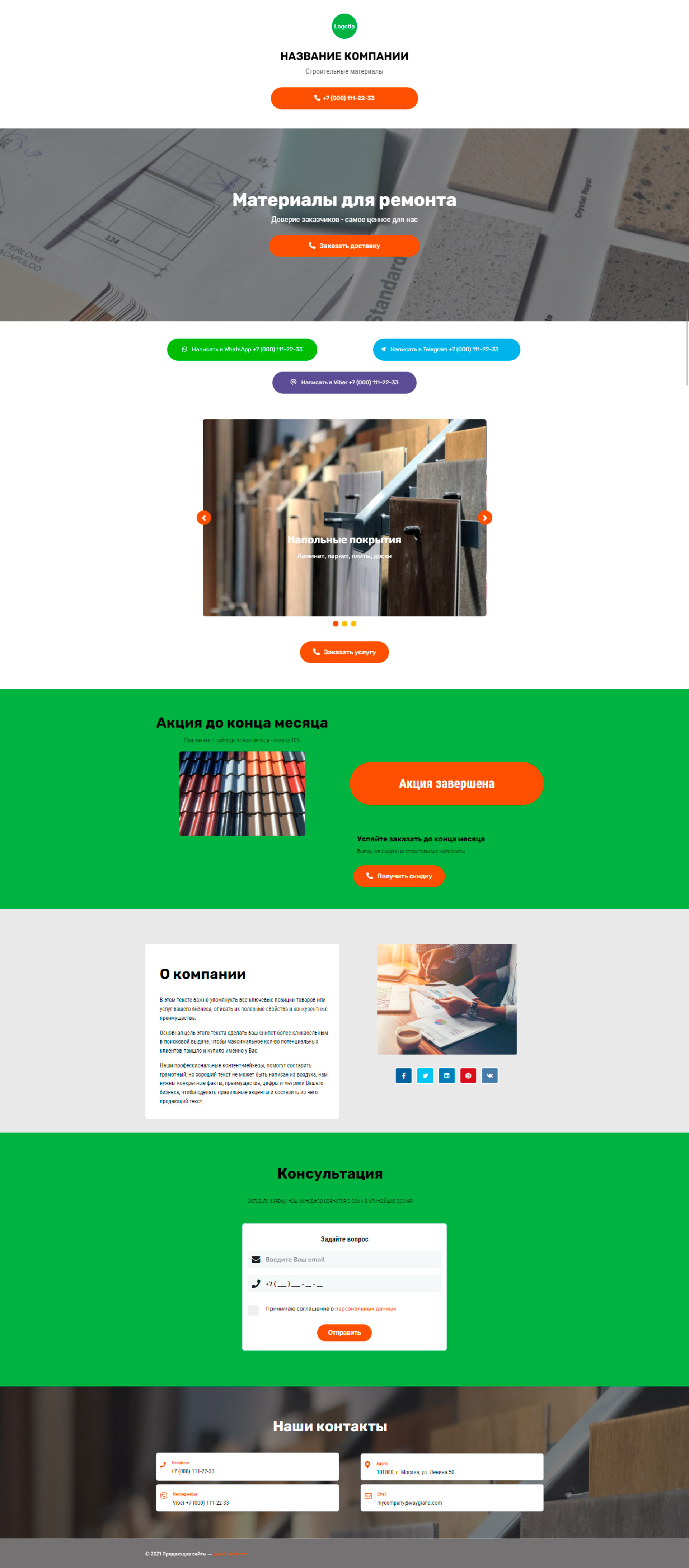 Закажите готовый продающий сайт визитка #2050101 в Ветке за 5-7 дня «под ключ»: свёрстан, отрисован и готов к рекламе. Тематика шаблона «Строительные материалы».