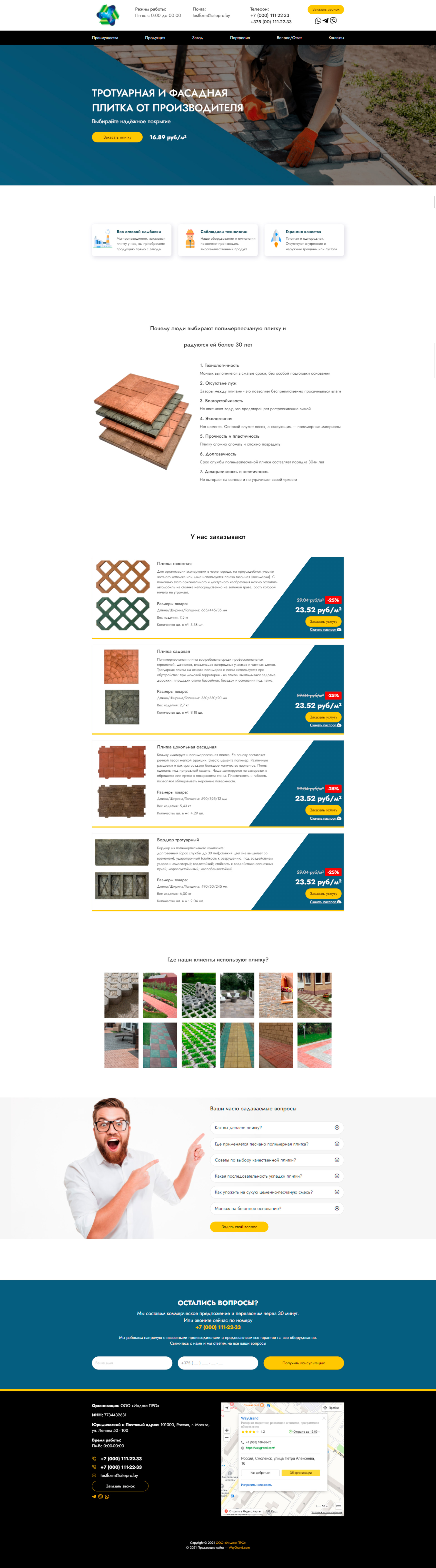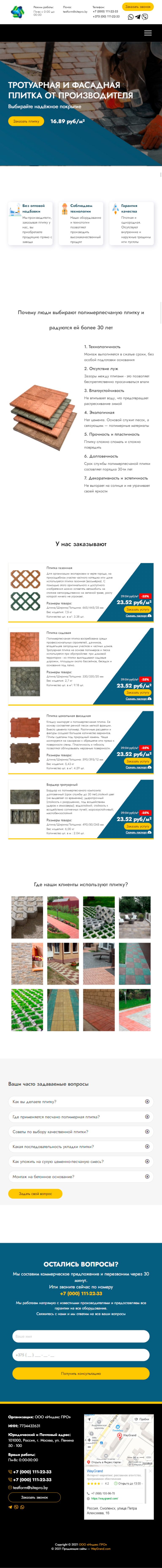 Закажите готовый продающий сайт лендинг #2055202 в Ветке за 1-3 дня «под ключ»: свёрстан, отрисован и готов к рекламе. Тематика шаблона «Тротуарная плитка».
