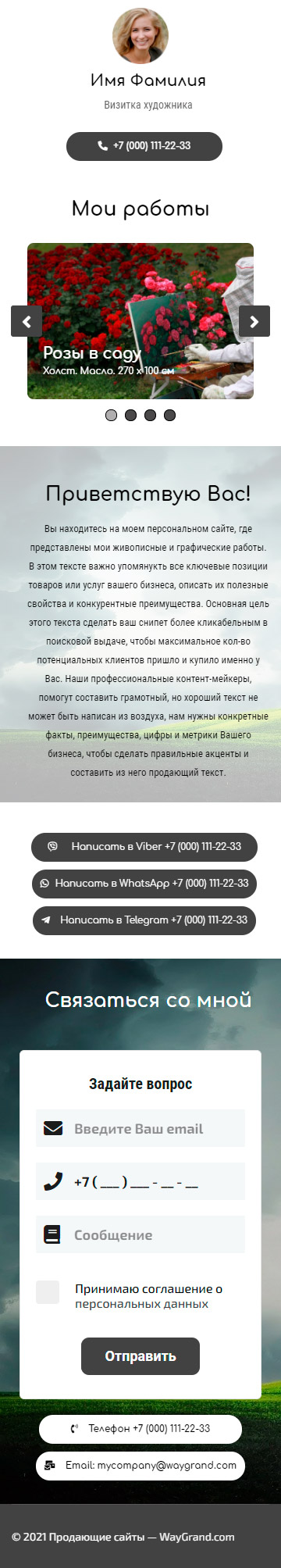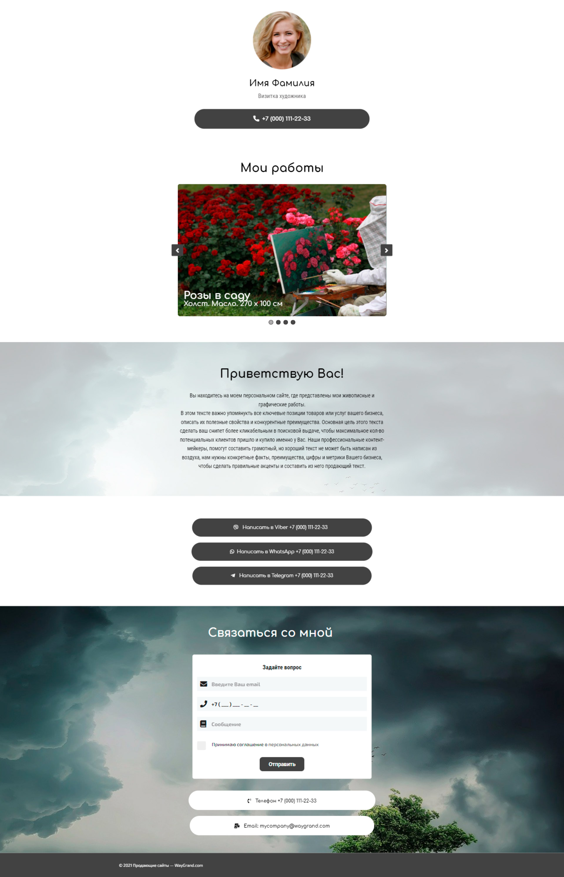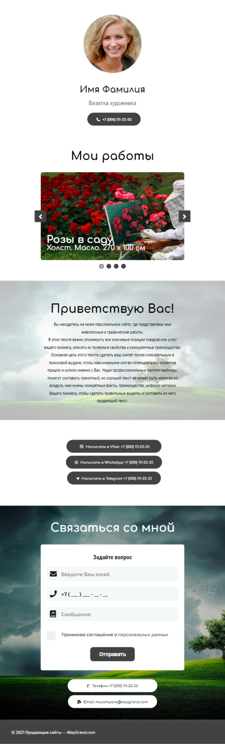 Закажите готовый продающий сайт визитка #0826101 в Ветке за 5-7 дня «под ключ»: свёрстан, отрисован и готов к рекламе. Тематика шаблона «Визитка художника».