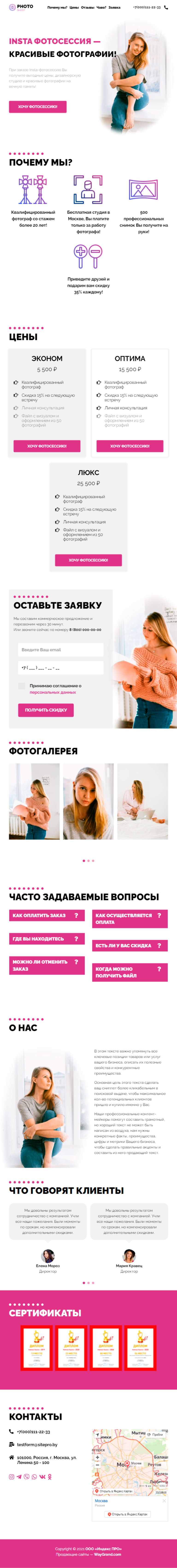 Закажите готовый продающий сайт лендинг #1853201 в Ветке за 1-3 дня «под ключ»: свёрстан, отрисован и готов к рекламе. Тематика шаблона «INSTA фотосессия — лучший подарок».