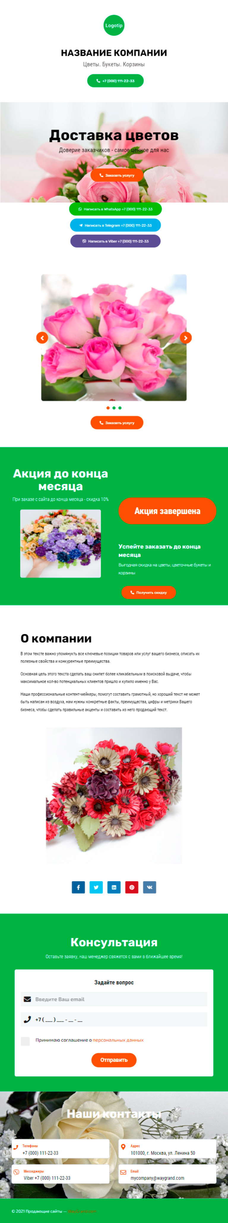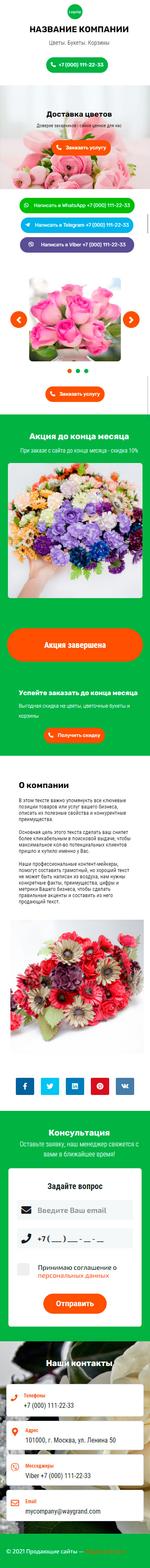 Закажите готовый продающий сайт визитка #2404101 в Ветке за 5-7 дня «под ключ»: свёрстан, отрисован и готов к рекламе. Тематика шаблона «Доставка цветов».