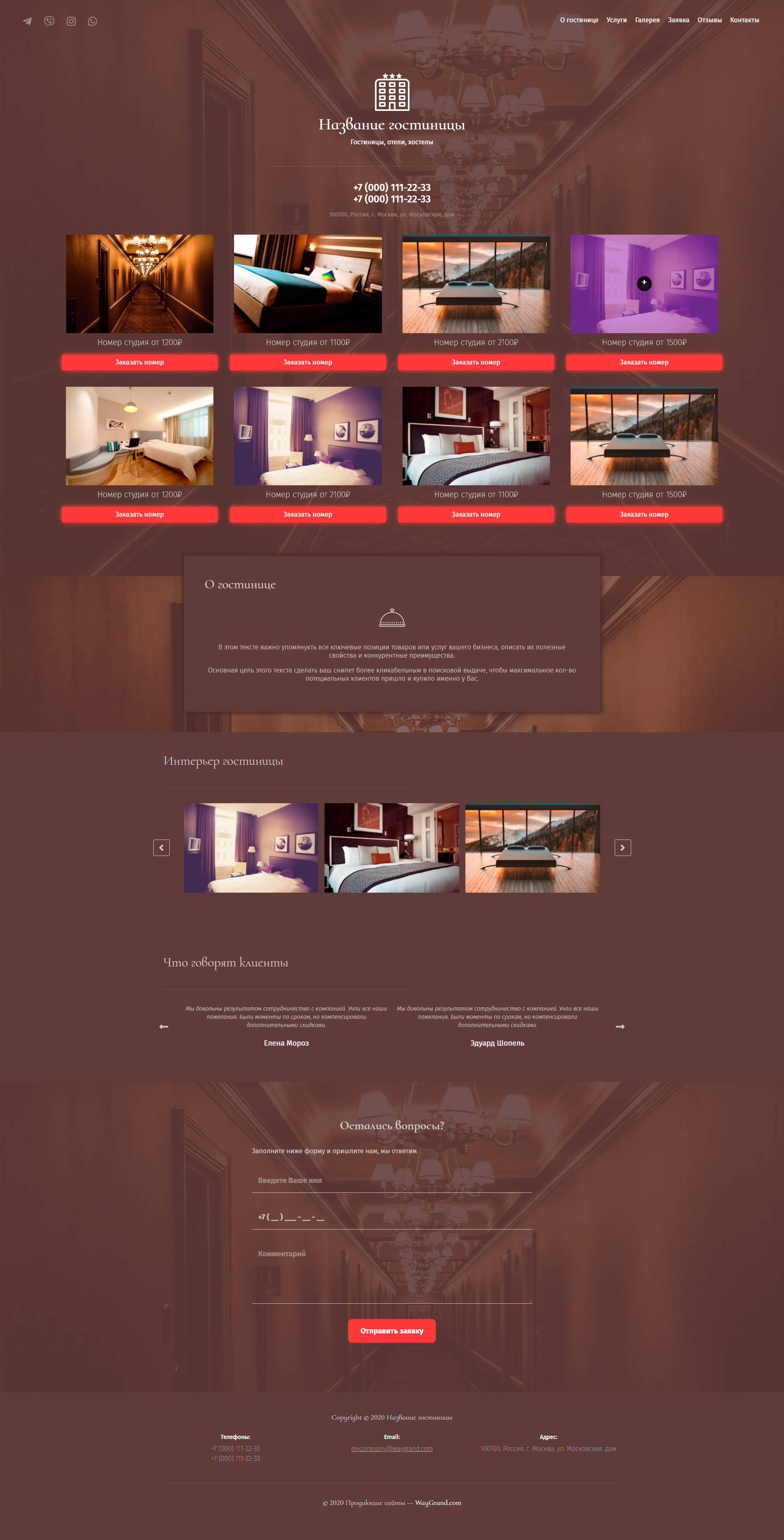 Закажите готовый продающий сайт лендинг #1905202 в Ветке за 1-3 дня «под ключ»: свёрстан, отрисован и готов к рекламе. Тематика шаблона «Гостиница, повышенный комфорт».