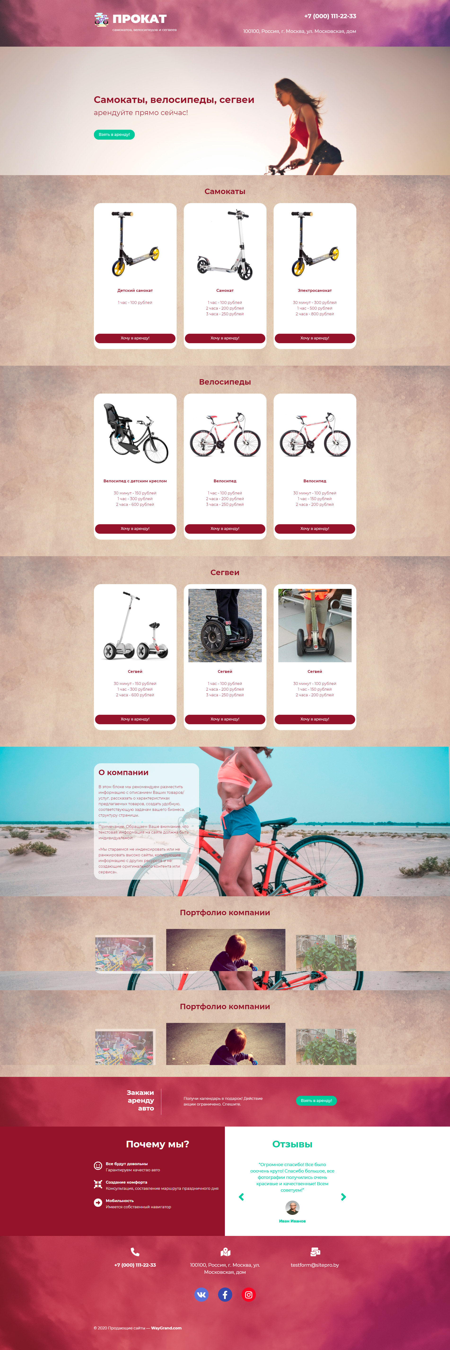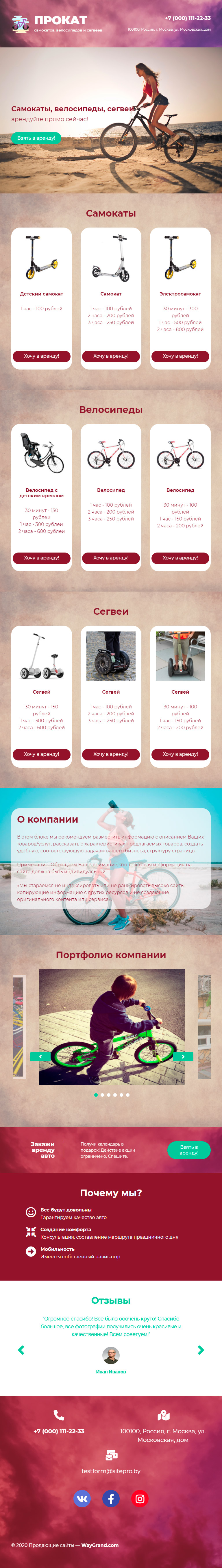 Закажите готовый продающий сайт лендинг #1907201 в Ветке за 1-3 дня «под ключ»: свёрстан, отрисован и готов к рекламе. Тематика шаблона «Прокат самокатов и велосипедов».