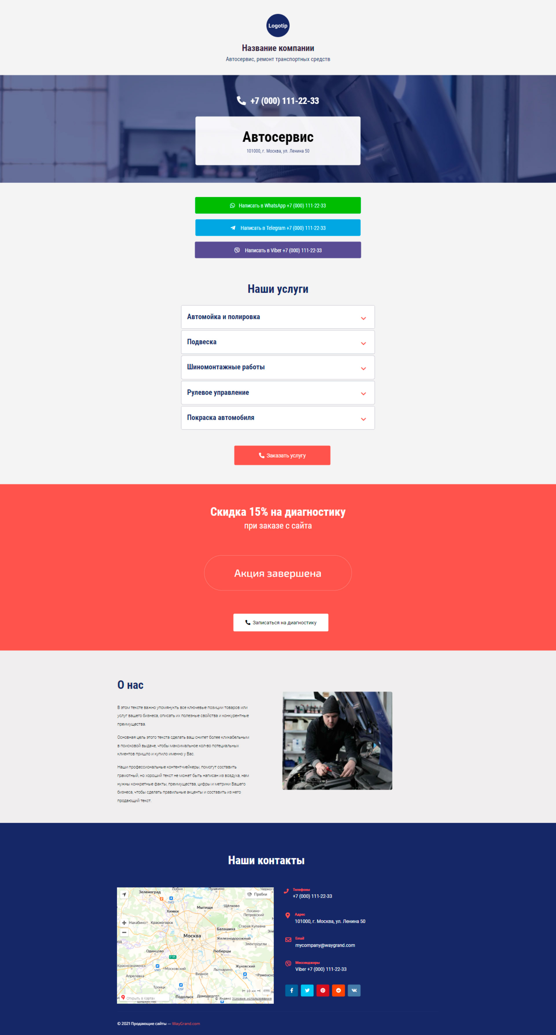 Закажите готовый продающий сайт визитка #0210101 в Ветке за 5-7 дня «под ключ»: свёрстан, отрисован и готов к рекламе. Тематика шаблона «Автосервис, ремонт транспортных средств».