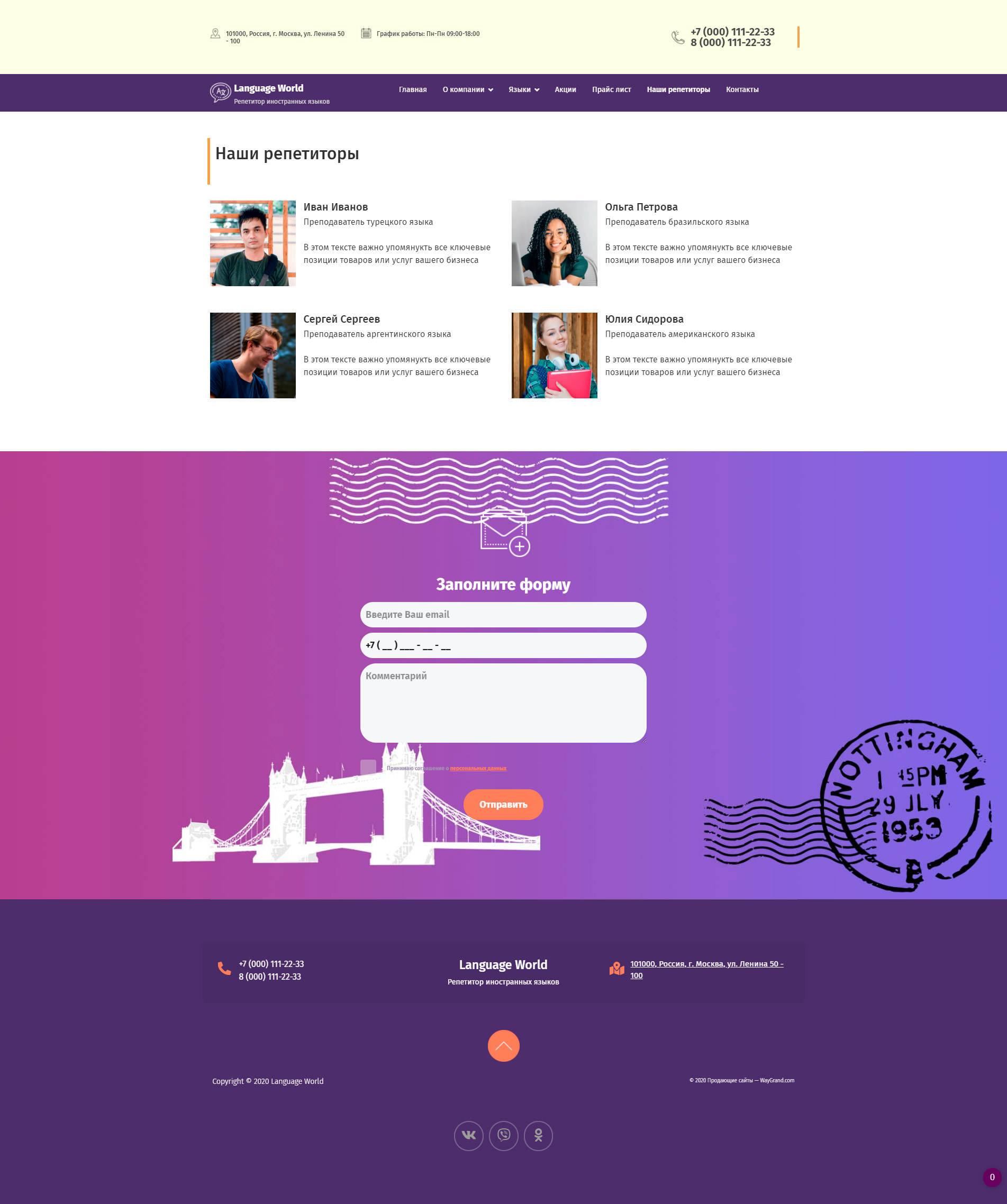 - Промогалерея "Репетиторы иностранных языков" с кнопкой призыва к действию "Записаться"