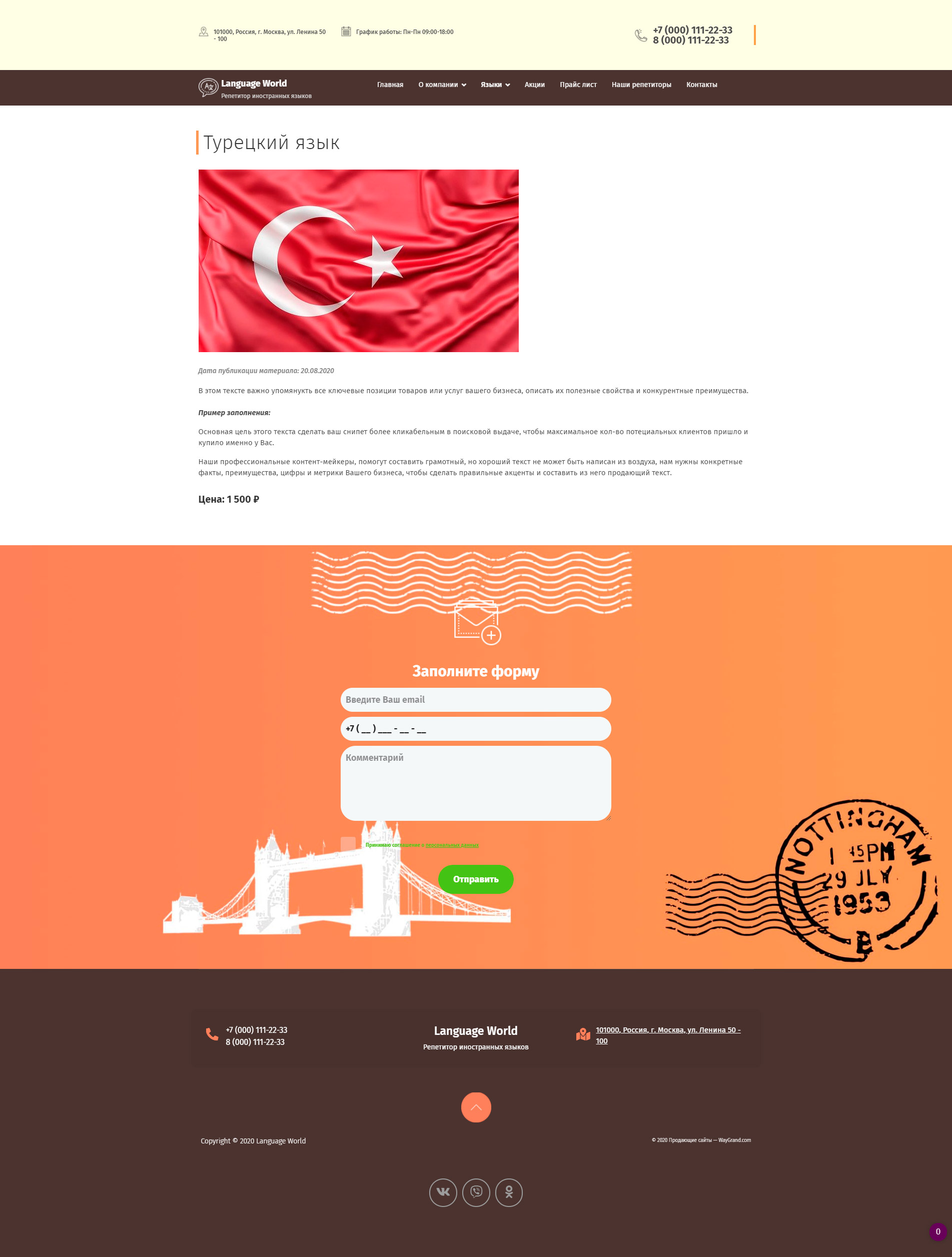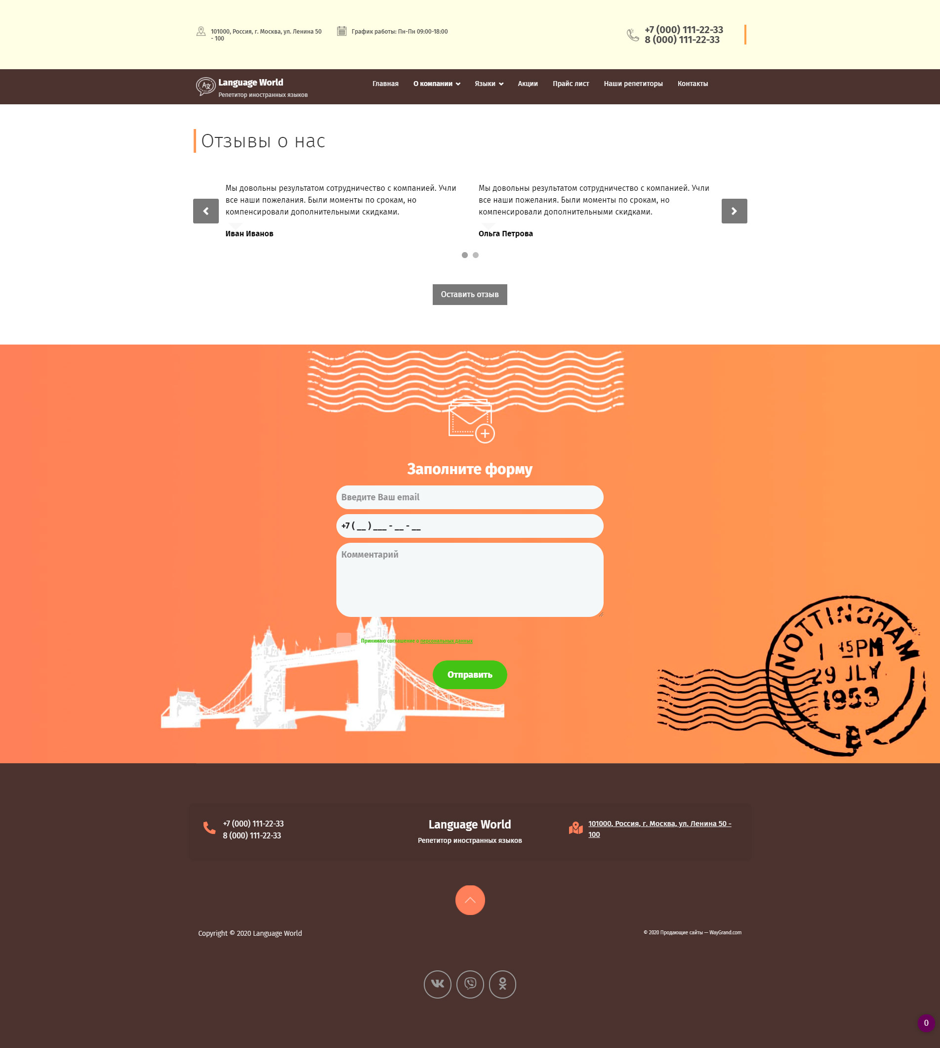 Закажите готовый продающий сайт визитка #1448303 в Ветке за 5-7 дня «под ключ»: свёрстан, отрисован и готов к рекламе. Тематика шаблона «Курсы иностранных языков».