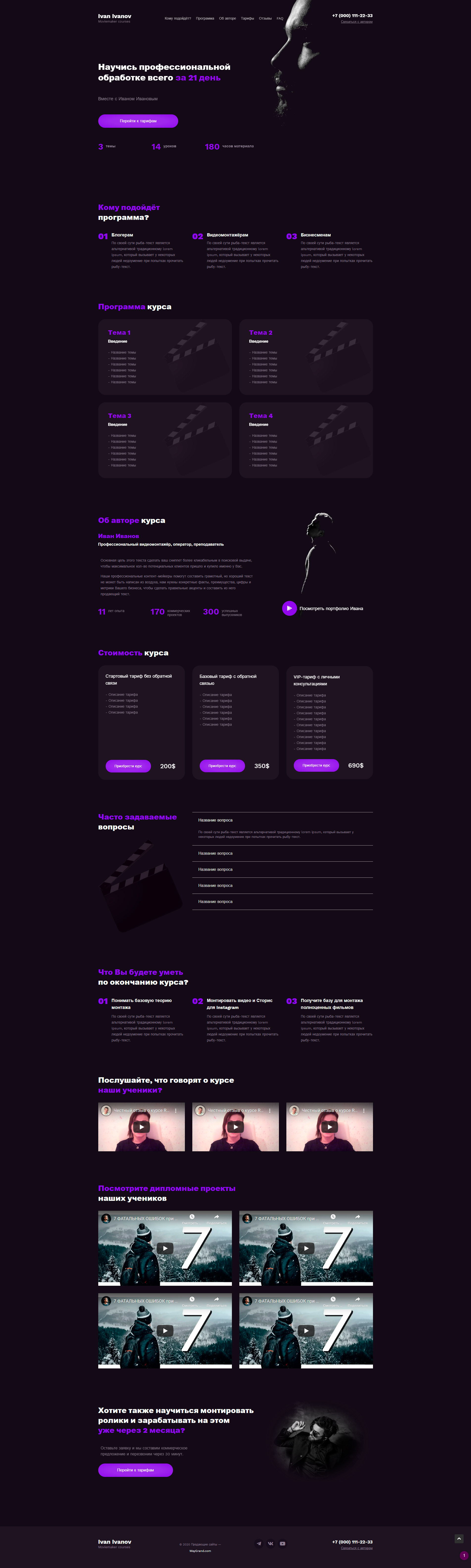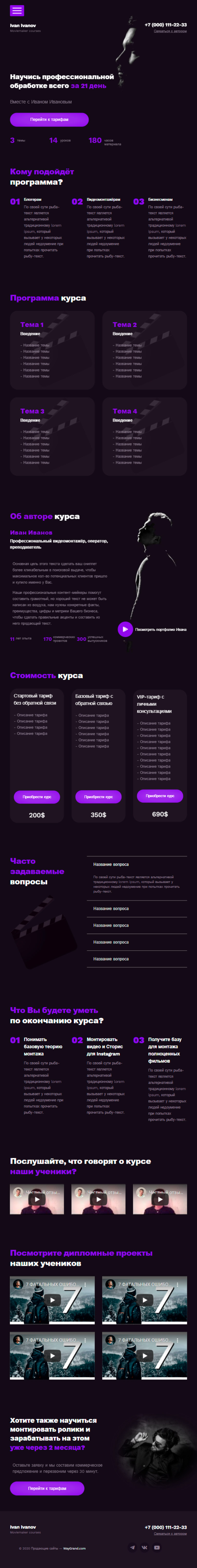Закажите готовый продающий сайт лендинг #1467204 в Ветке за 1-3 дня «под ключ»: свёрстан, отрисован и готов к рекламе. Тематика шаблона «Для курса видеомонтажа».