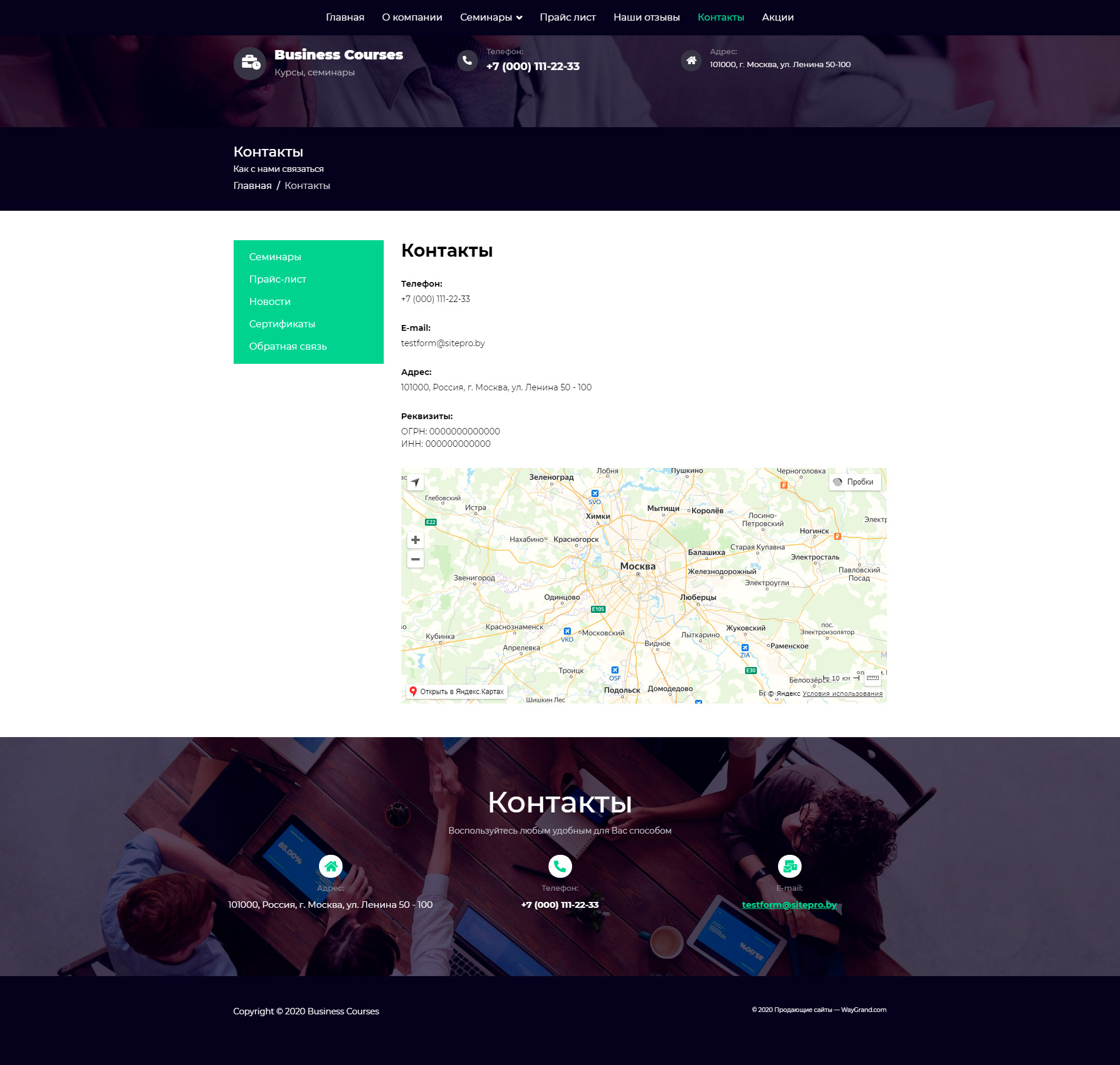 - Страница "Контакты"
