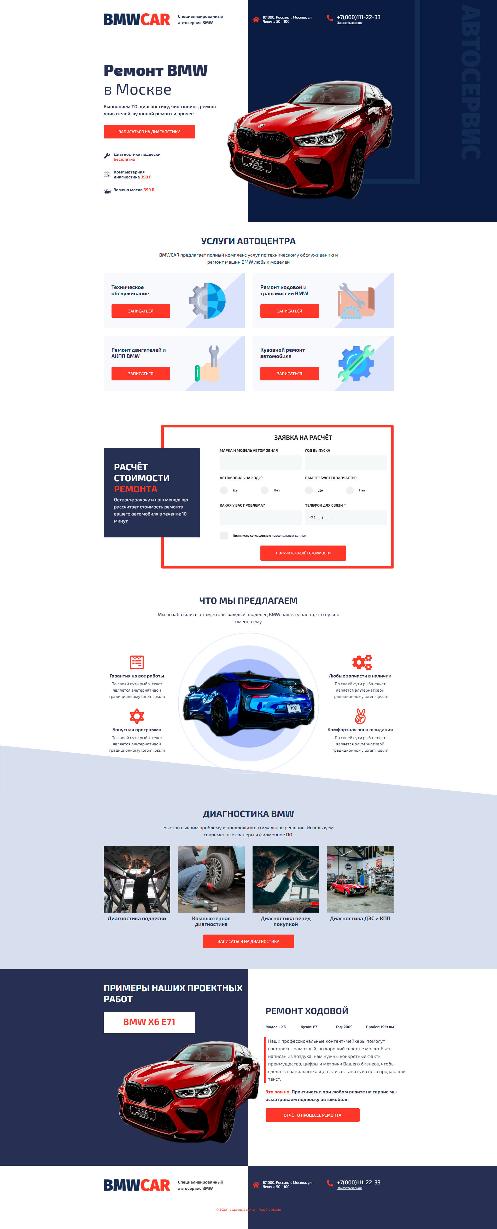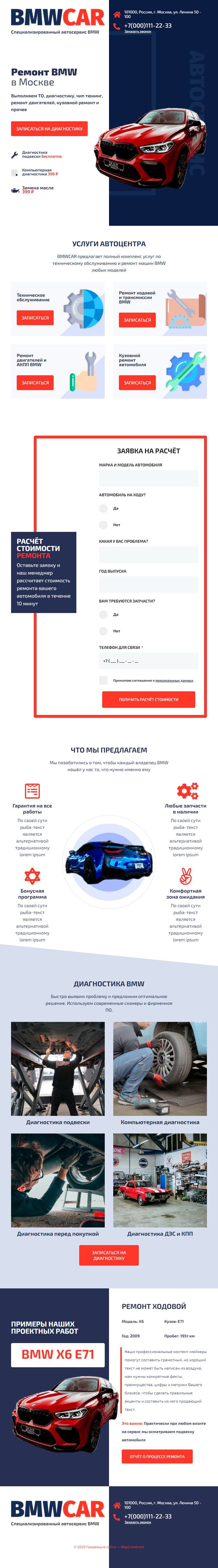 Закажите готовый продающий сайт лендинг #0210202 в Ветке за 1-3 дня «под ключ» по выгодным ценам на WayGrand: свёрстан, отрисован и готов к рекламе. Тематика шаблона «Ремонт BMW».
