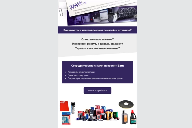 Дизайн и вёрстка уникального Email- письма