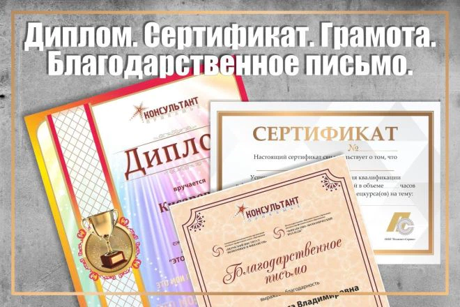 Выполним диплом, сертификат, грамоту ✅ В соответствии с Вашими пожеланиями. Внесение правок включено по умолчанию