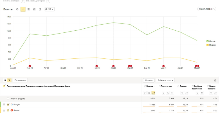 Задача была достаточно сложная, так как на сайте было много лишней информации, присутствовали также технические ошибки, выявленные в ходе СЕО-аудита. Клиент давал мало информации, поэтому многие действия приходилось выполнять на основании анализа конкурентов.