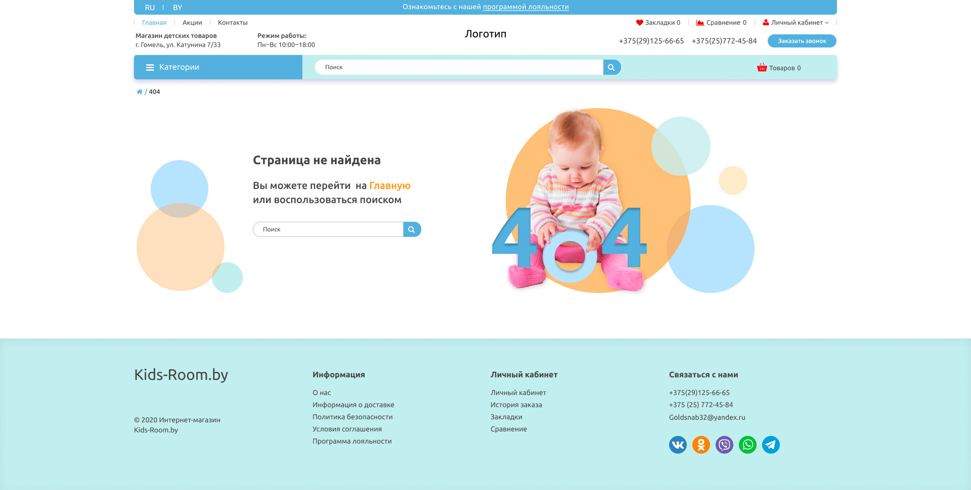 Закажите готовый продающий сайт лендинг #301 в Ветке за 1-3 дня «под ключ»: свёрстан, отрисован и готов к рекламе. Тематика шаблона «Детские товары».