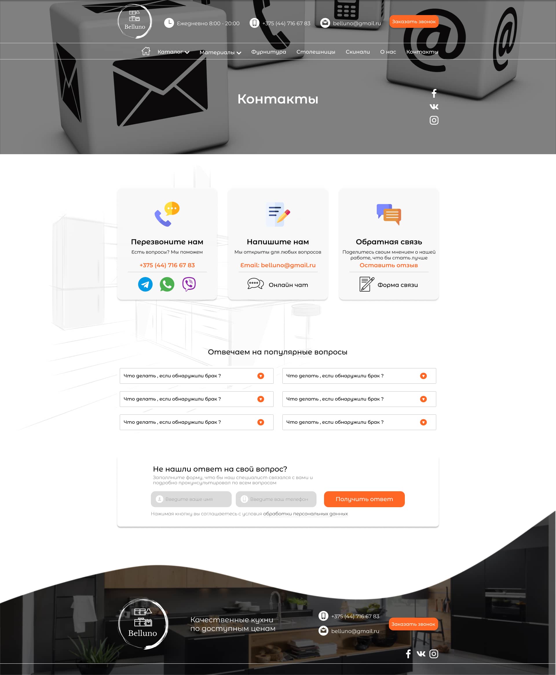 Закажите готовый продающий сайт визитка #282 в Ветке за 5-7 дня «под ключ»: свёрстан, отрисован и готов к рекламе. Тематика шаблона «Кухни».