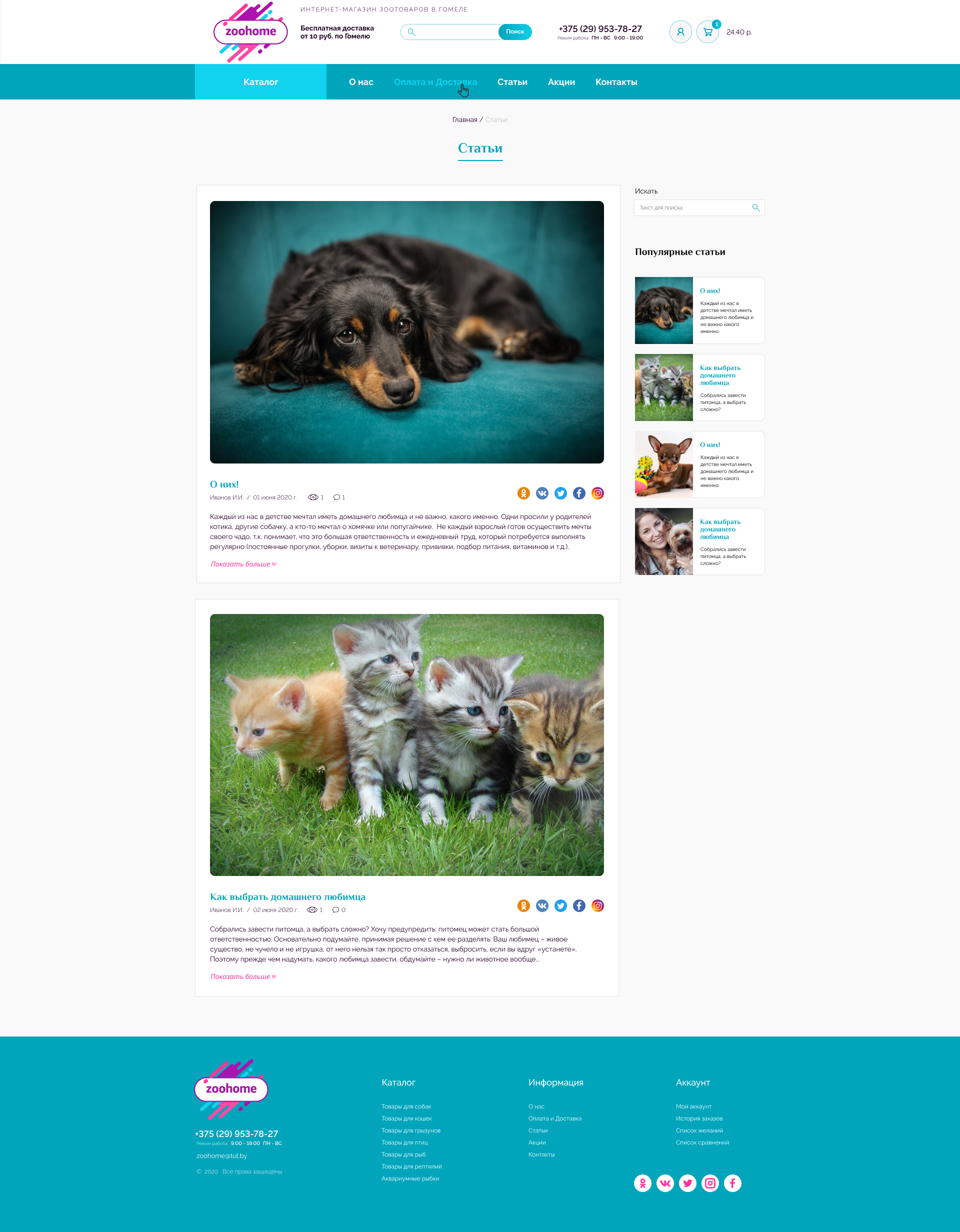 - Блок "Интернет-магазин Zoohome.by"