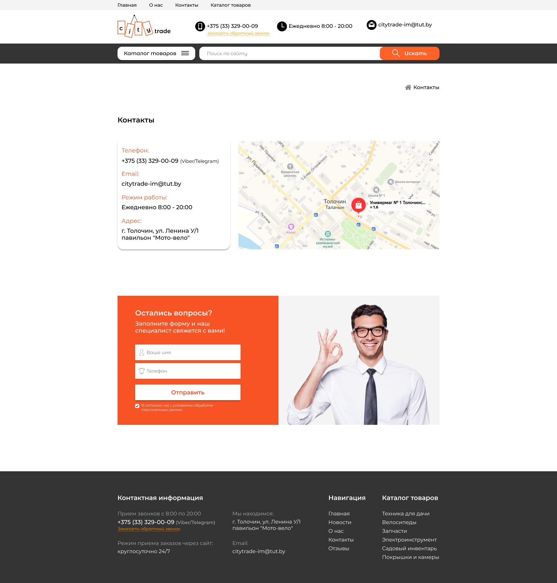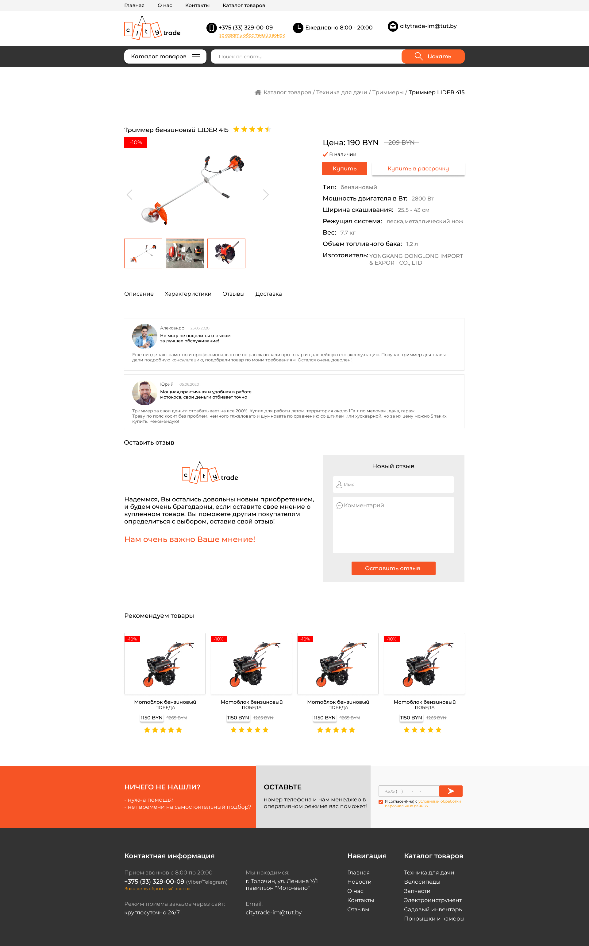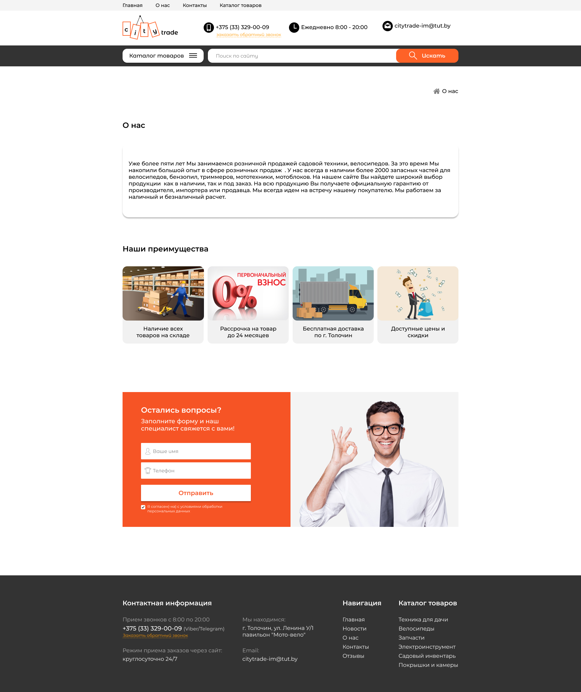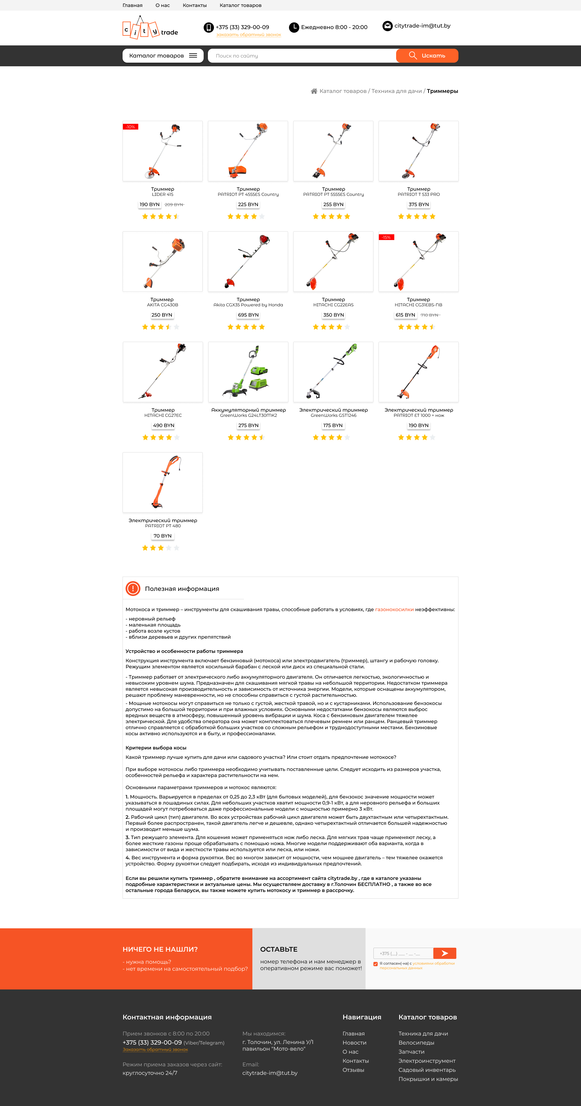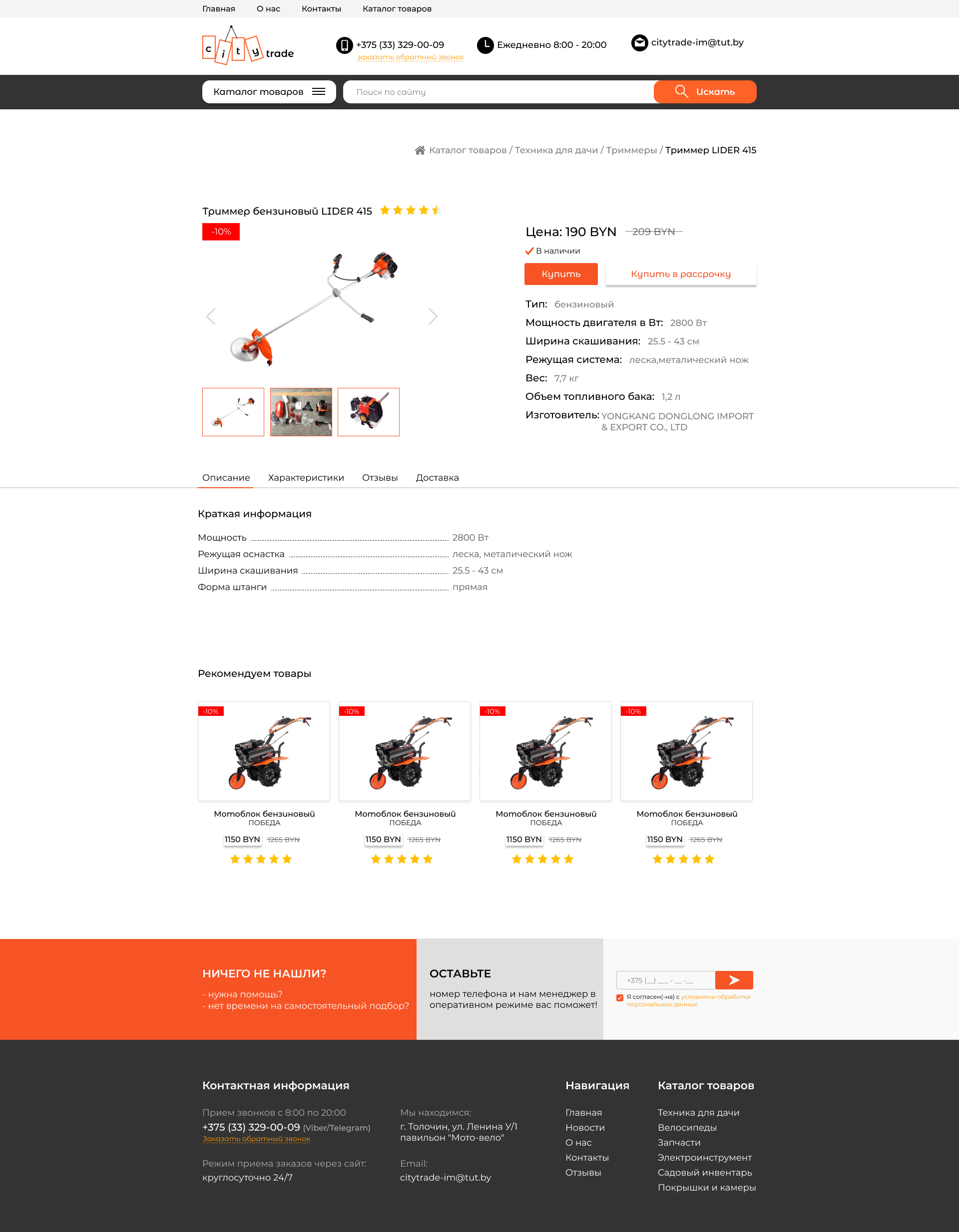 Закажите готовый продающий сайт визитка #281 в Ветке за 5-7 дня «под ключ»: свёрстан, отрисован и готов к рекламе. Тематика шаблона «Розничная продажа садовой техники, велосипедов».