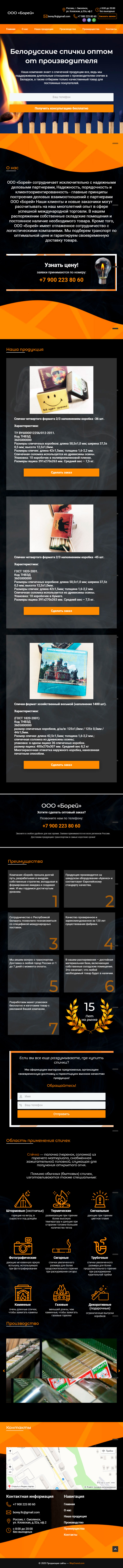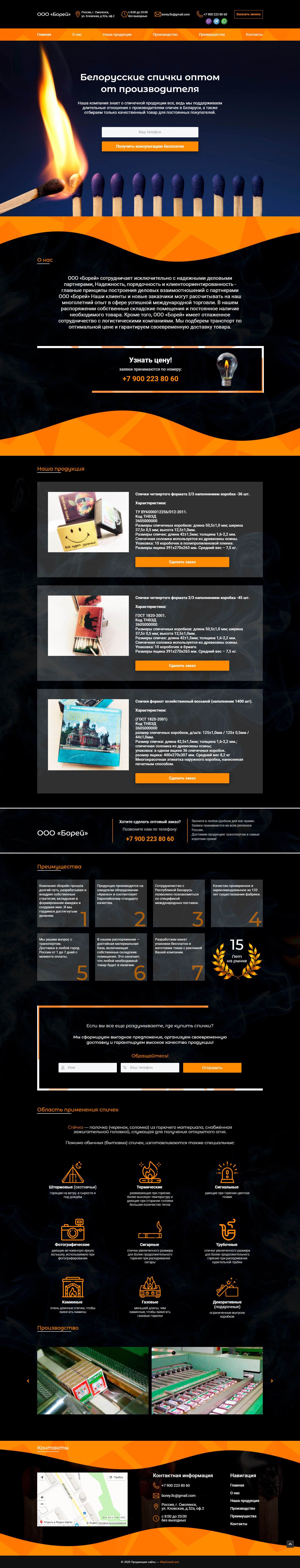 Закажите готовый продающий сайт лендинг #115 в Ветке за 1-3 дня «под ключ»: свёрстан, отрисован и готов к рекламе. Тематика шаблона «Белорусские спички оптом от производителя».