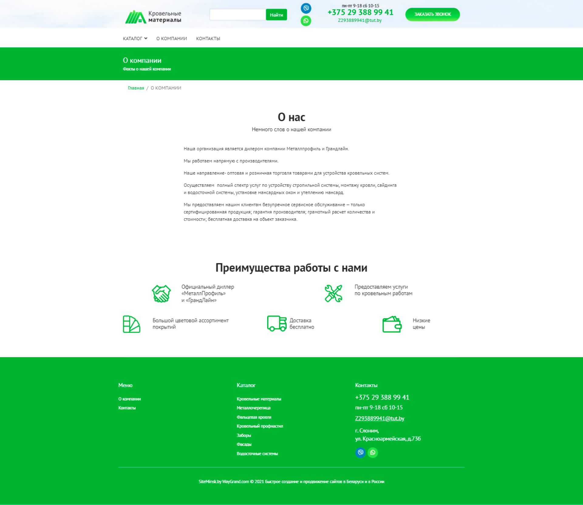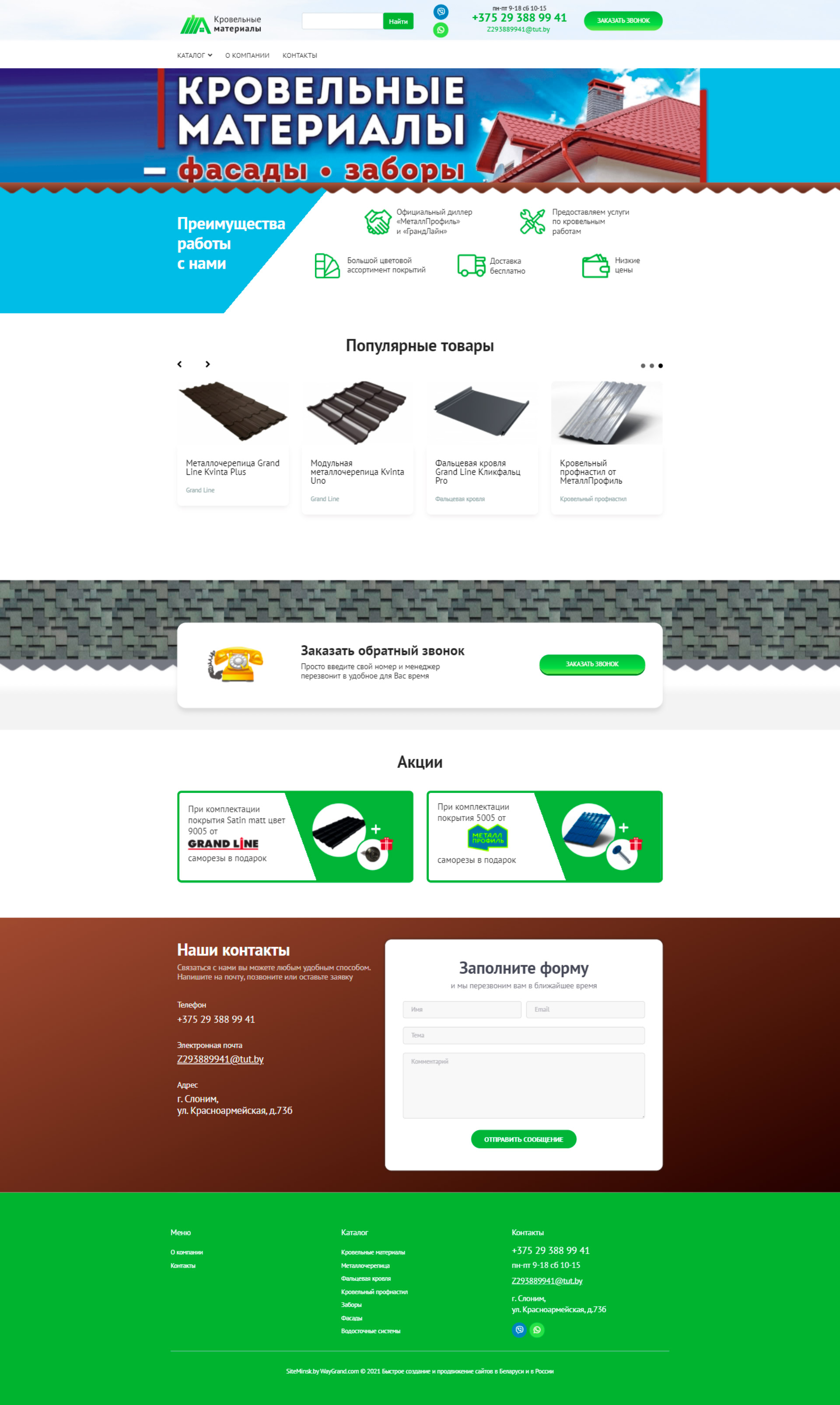 Закажите готовый продающий сайт визитка #324 в Ветке «под ключ» на waygrand по выгодной цене: свёрстан, отрисован и готов к рекламе. Тематика шаблона «Кровельные материалы».