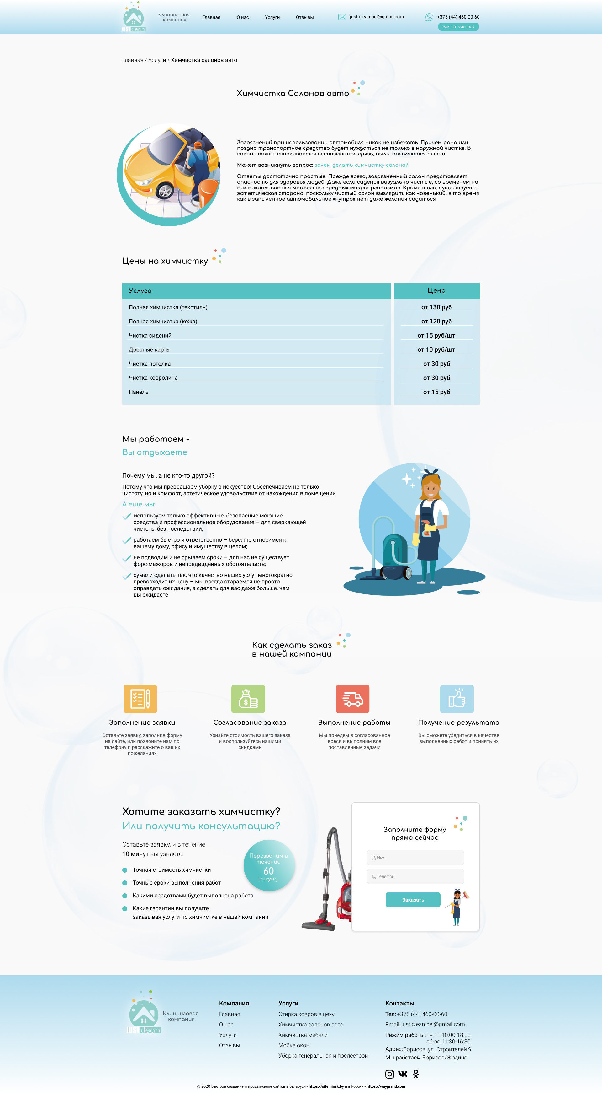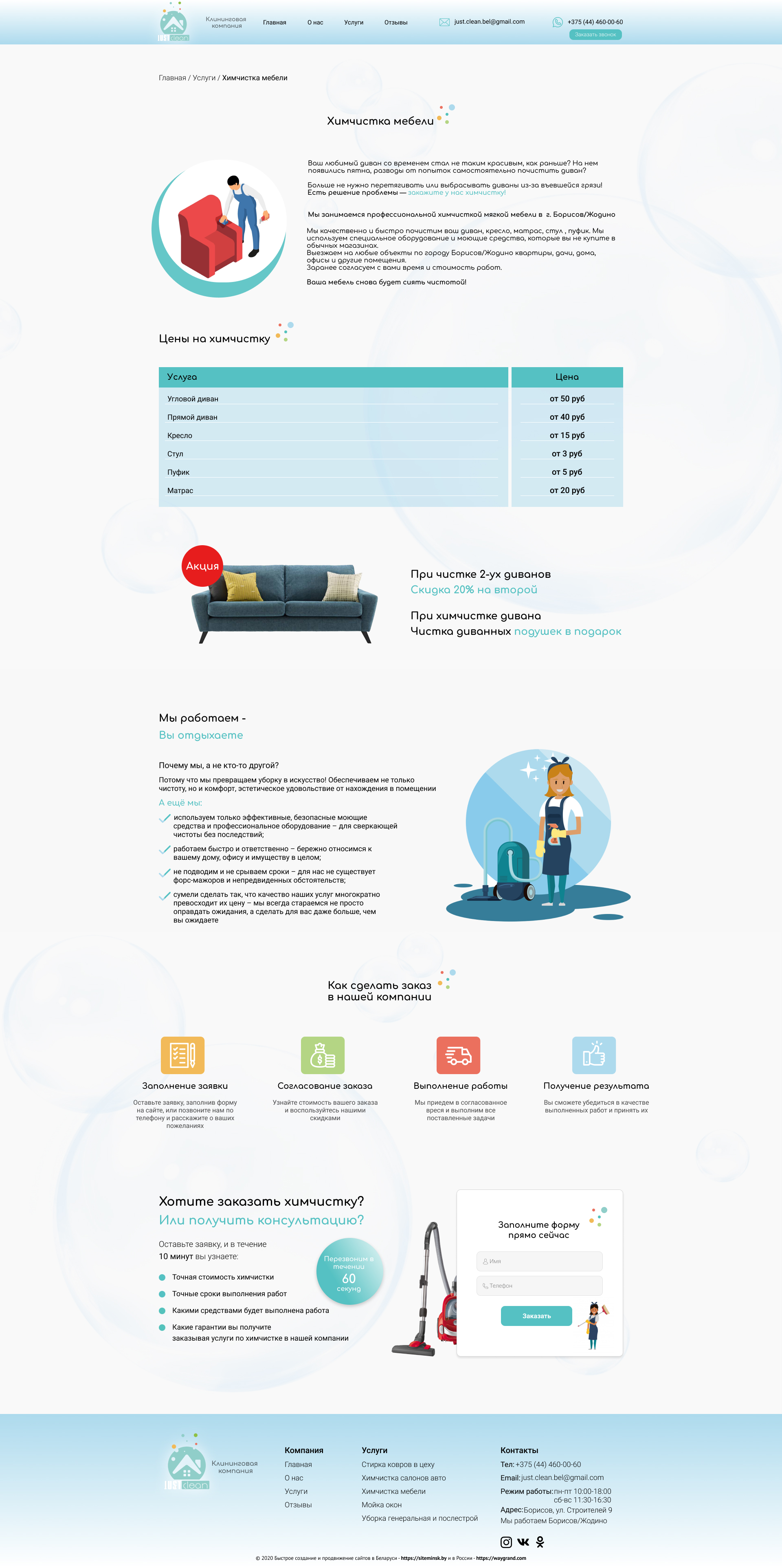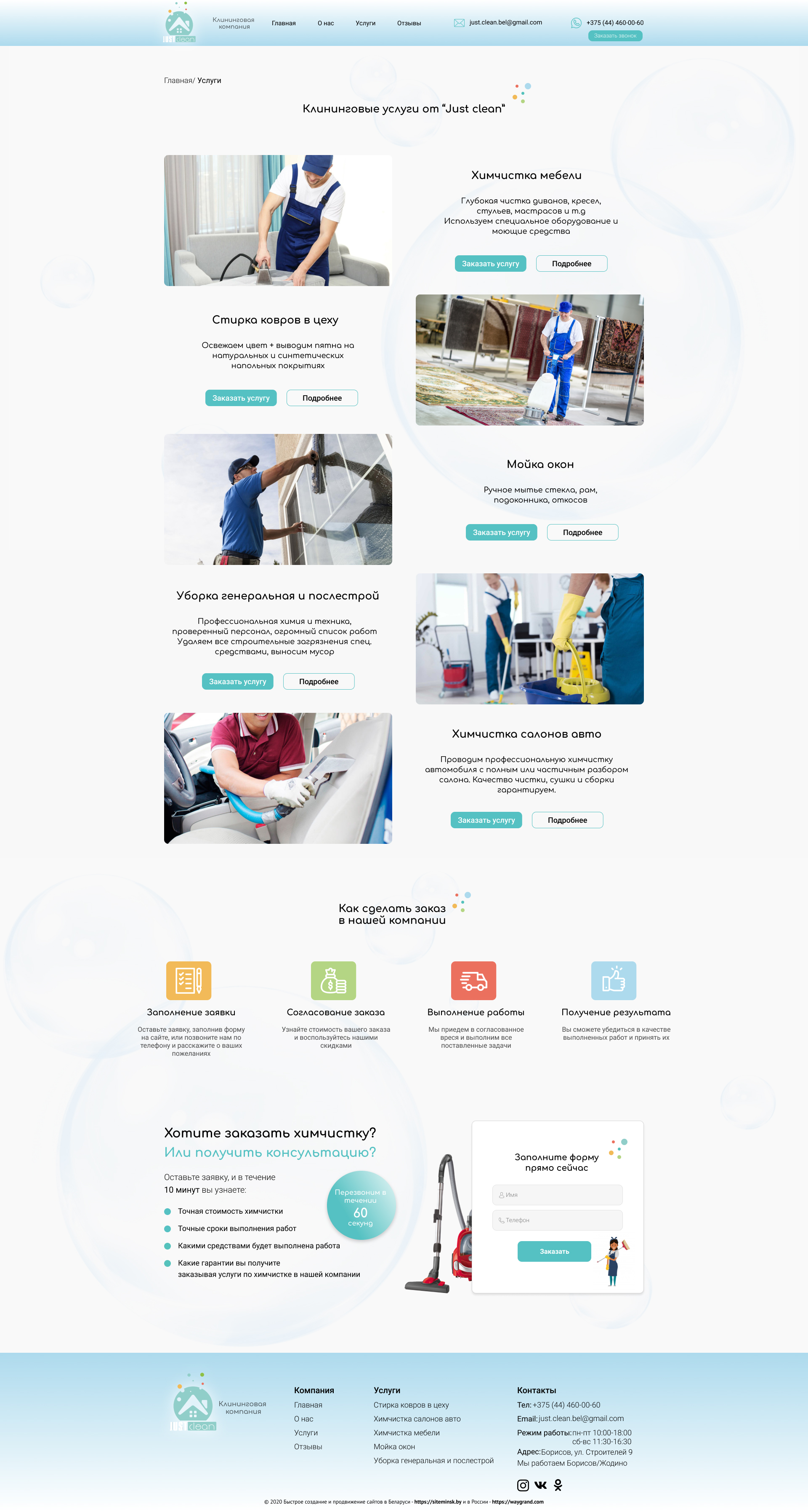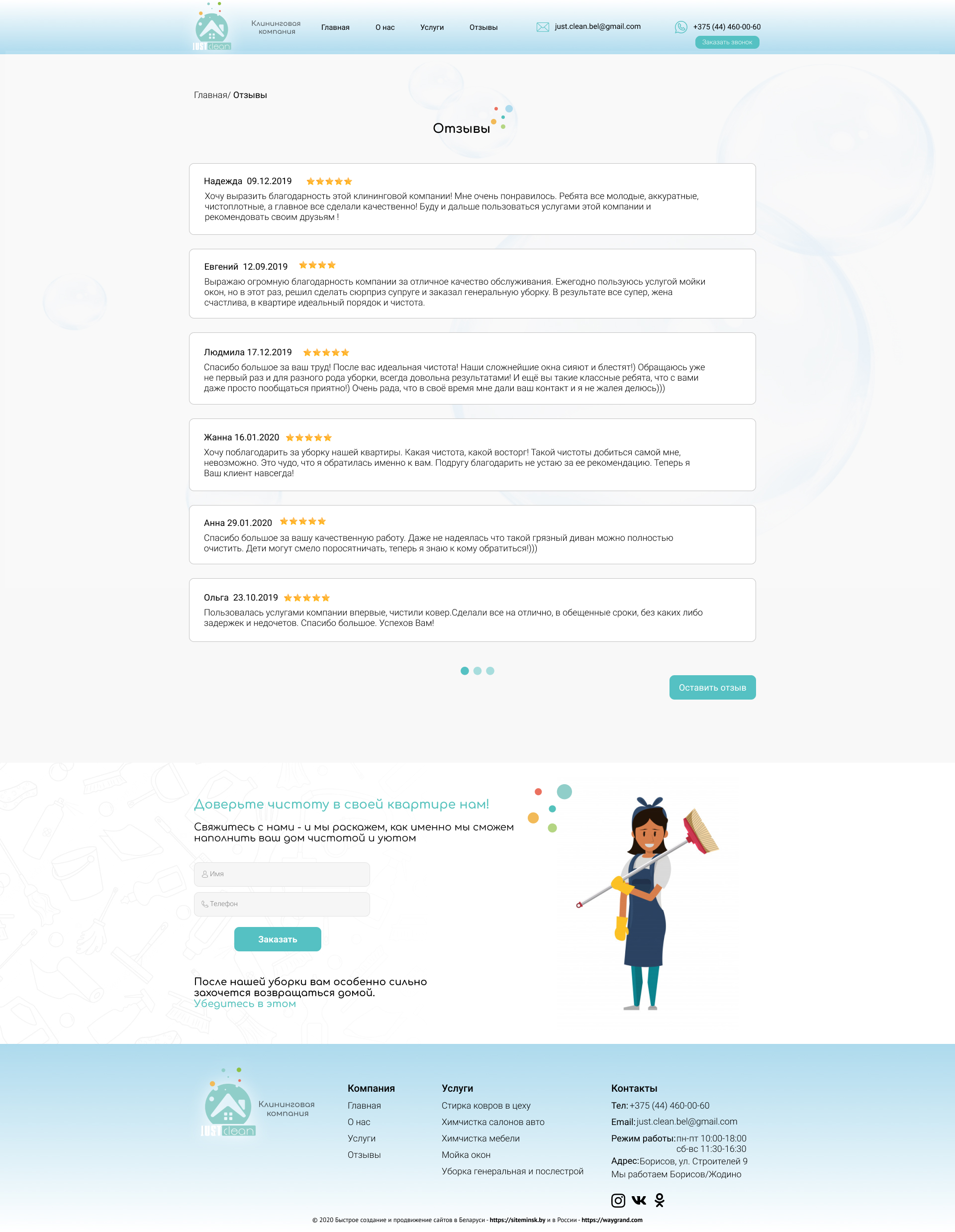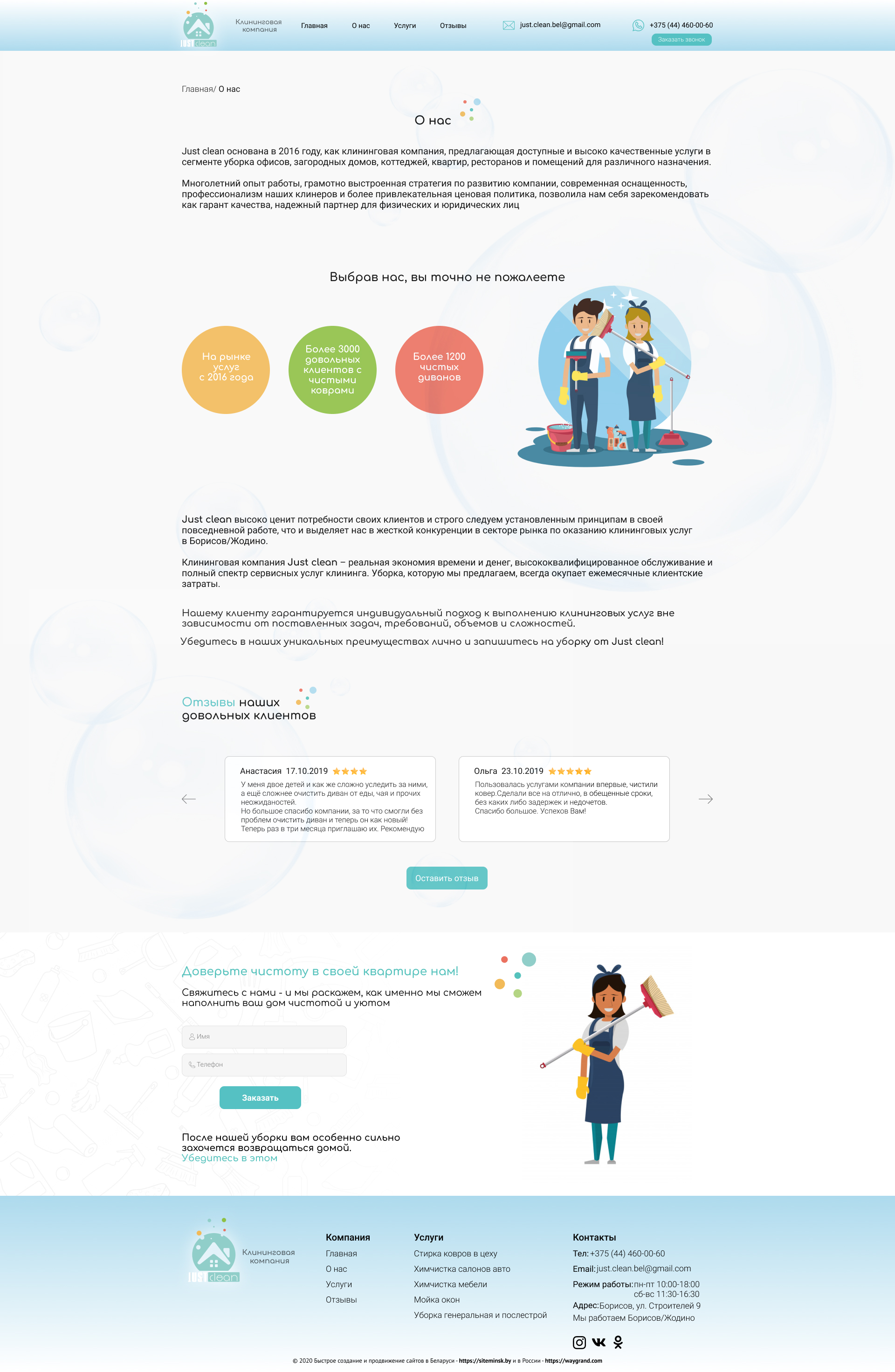 Закажите готовый продающий сайт визитка #237 в Ветке за 5-7 дня «под ключ»: свёрстан, отрисован и готов к рекламе. Тематика шаблона «Клининговая компания».