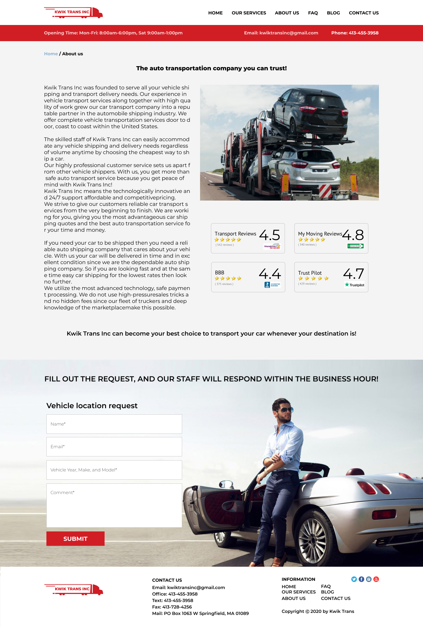 Закажите готовый продающий сайт визитка #223 в Ветке за 5-7 дня «под ключ»: свёрстан, отрисован и готов к рекламе. Тематика шаблона «Safe & Reliable National Auto Transport».